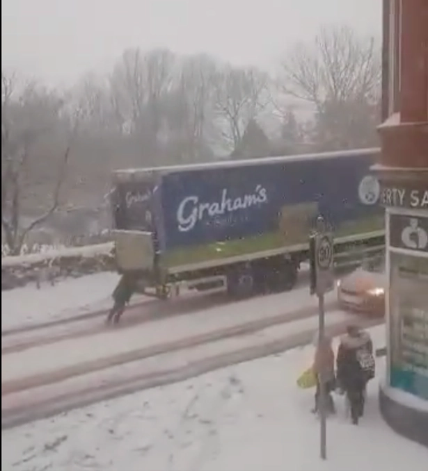 Грузовик Graham’s, не выдержав испытания суровой зимней погодой в Кауденбите (Шотландия), застрял посреди заснеженной улицы. К счастью, на помощь ему поспешила женщина, которая шокировала прохожих, когда в одиночку начала толкать фуру, пишет Dailyrecord.