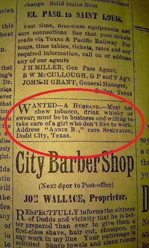 Пользователь Reddit под ником djbryanc опубликовал фотографию из газеты XIX века, в которой было любопытное объявление от женщины из Техаса (США), разыскивающей идеального будущего мужа.