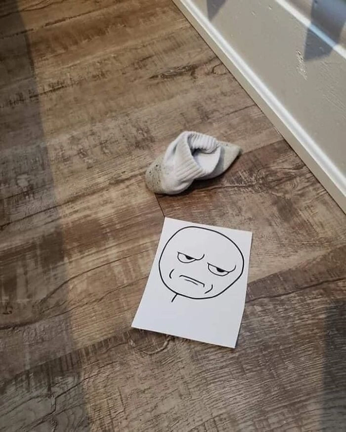Так, уставшая повторять одно и то же мать придумала хитрый лайфхак. Женщина распечатала на листке популярный мем «Ты издеваешься?» и начала оставлять его в местах, где ее дети разбрасывали свои вещи.