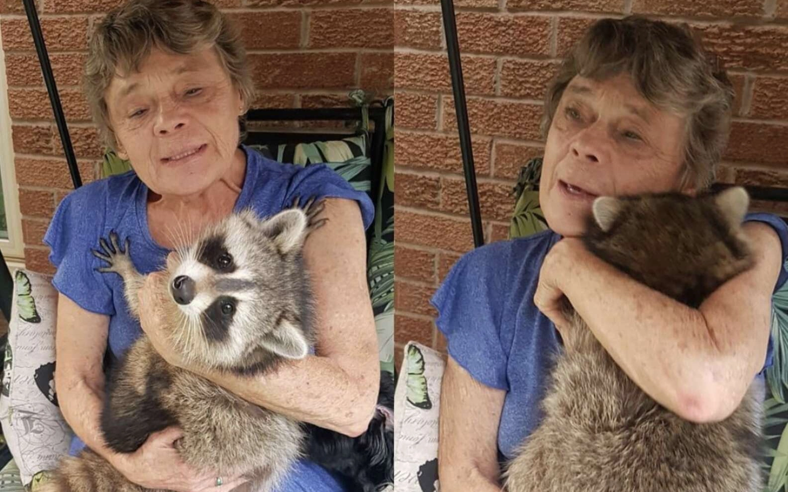 Женщина спасла крошку-енота, и теперь он каждый день приходит к ней в гости