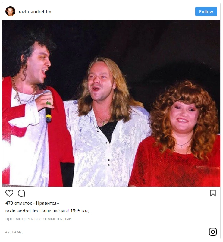 Пользователи Инстаграм горячо обсуждают фотографию народной артистке СССР Аллы Пугачевой 1995 года, на котором она снята в компании Филиппа Киркорова и Владимира Преснякова. Снимок в своем фотоблоге разместил продюсер группы «Ласковый Май» Андрей Разин.