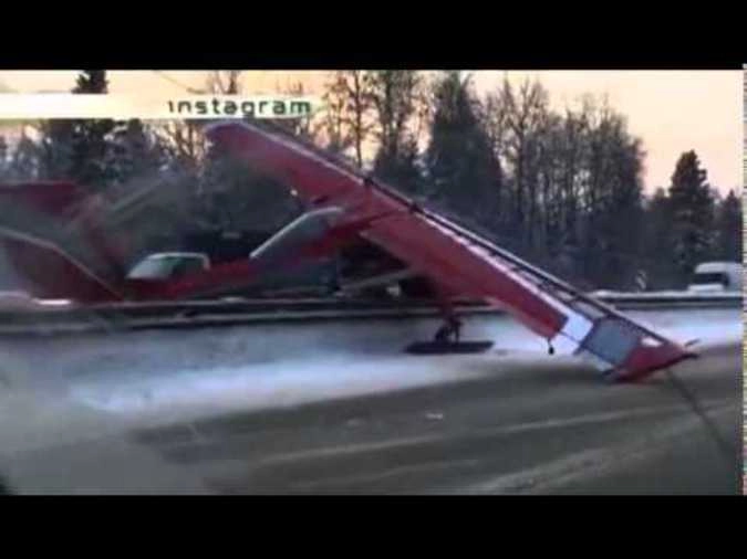 Жесткая посадка самолета на Ярославском шоссе: ВИДЕО