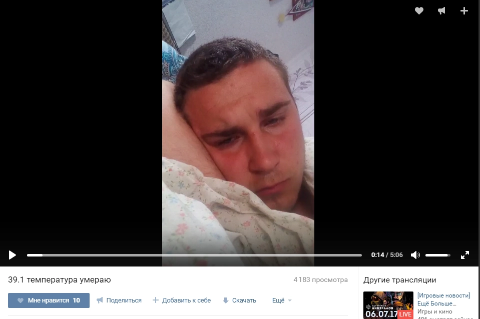 Вскоре после исчезновения школьницы, которая воспитывалась отцом, 18-летний Владимир выложил в Сеть видеоролик, в котором жалуется, что «умерает» от поднявшейся температуры.
