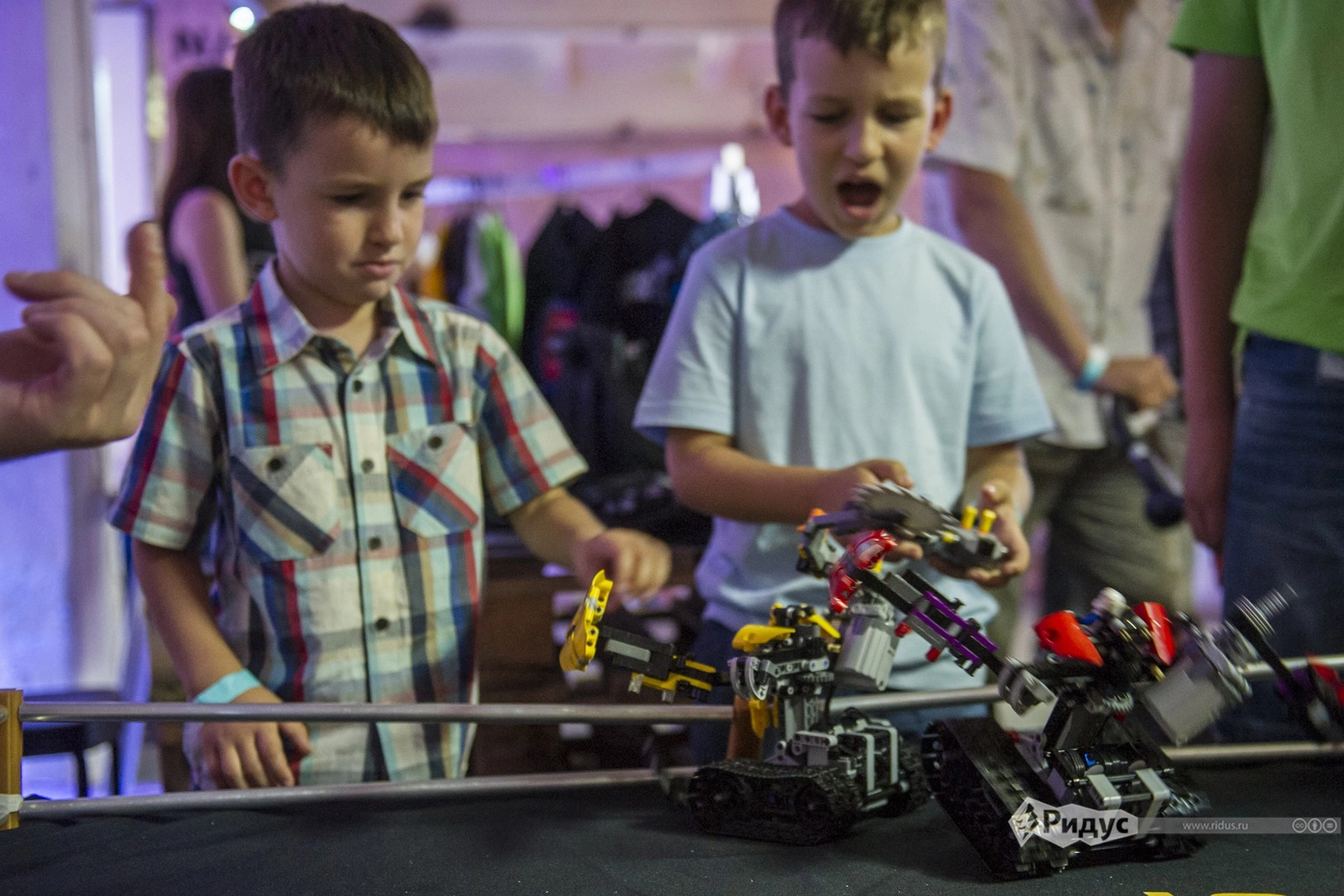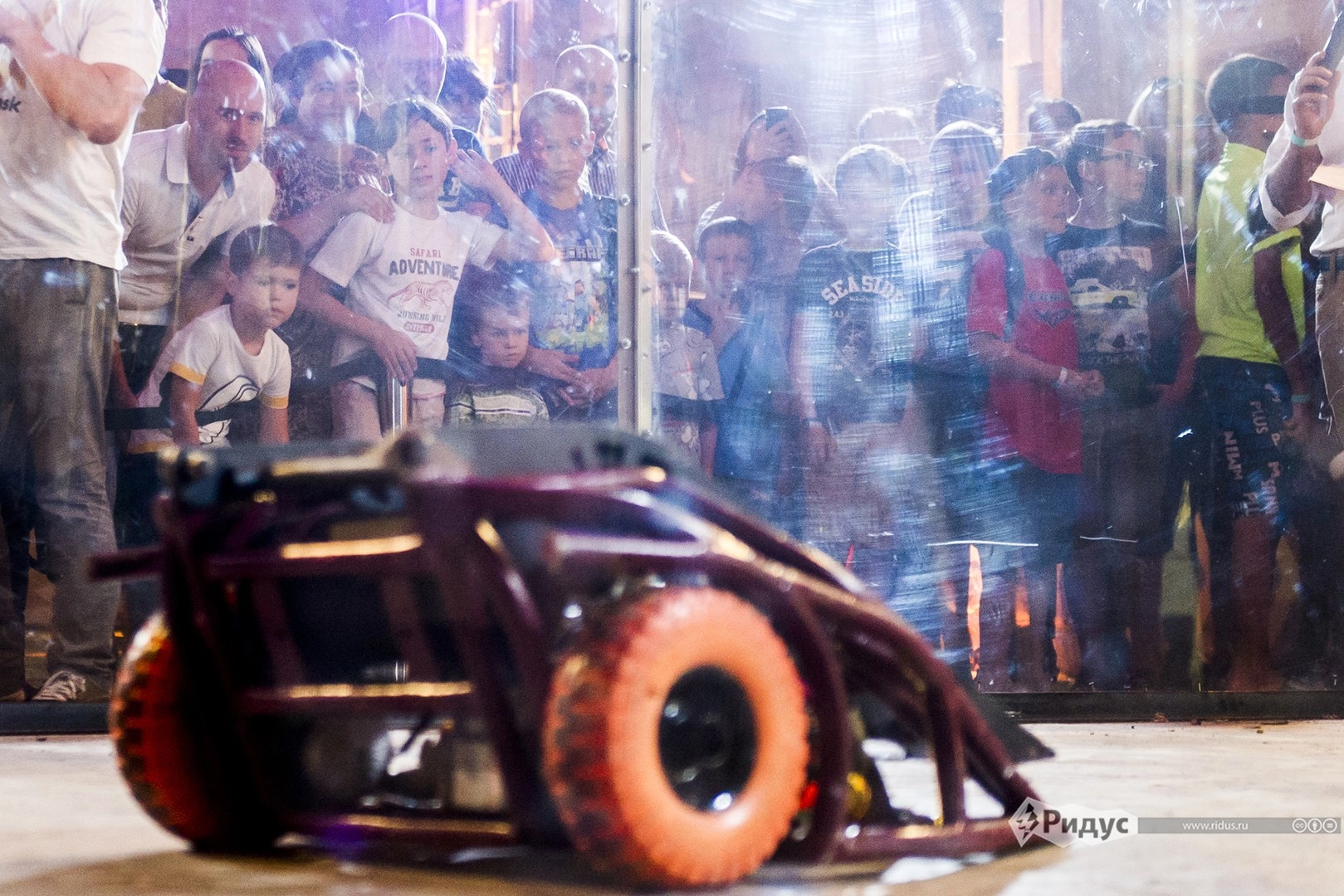 Шумно, весело, а главное — безопасно! Такой девиз выбрали организаторы мероприятия. Ведь на чудо робототехники хотят посмотреть как взрослые, так и дети. Поэтому, чтобы избежать проблем, агрессивные железяки были отгорожены от публики прочным экраном.