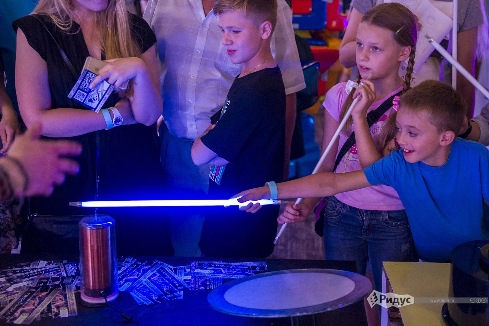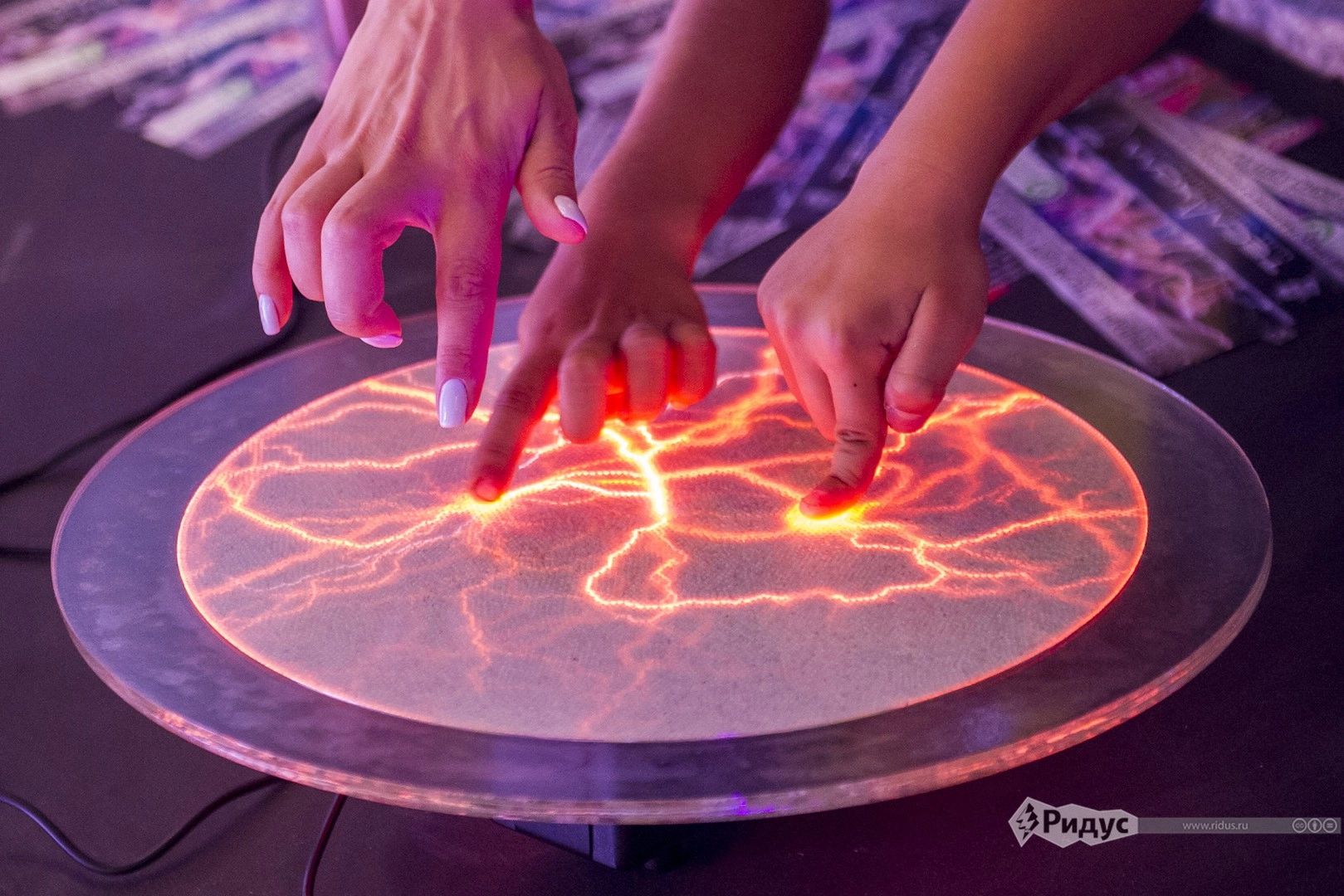 А вот на Тесла-шоу посетители знакомились с невероятно красивыми и непонятными явлениями в области физики. Андрей, ведущий данного стенда, терпеливо и внятно рассказывал теоретическую часть всего происходящего, но зрителей больше увлекал процесс практики.