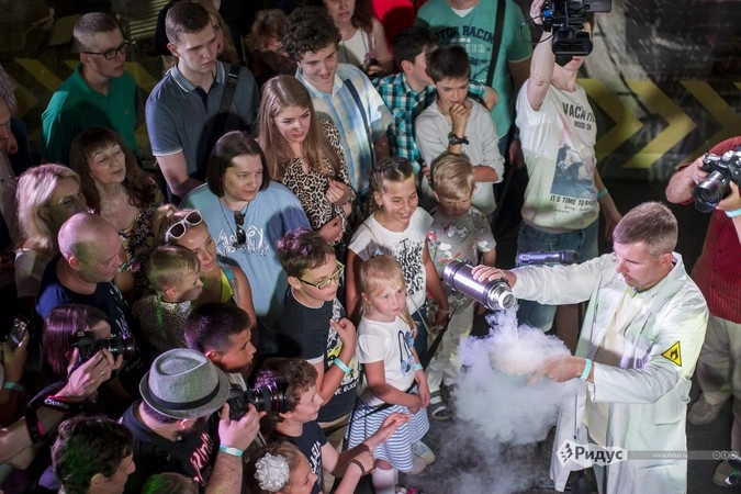 Но одними роботами сыт не будешь, подумали создатели фестиваля и пригласили профессора Чоп-Чопа, который удивлял публику своими познаниями в химии, а конкретно — номерами с жидкими азотом.