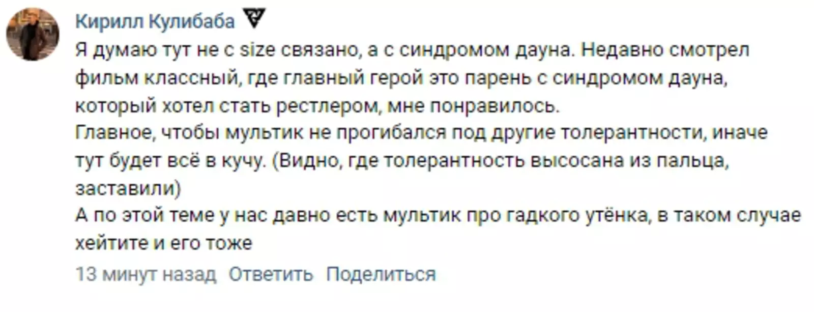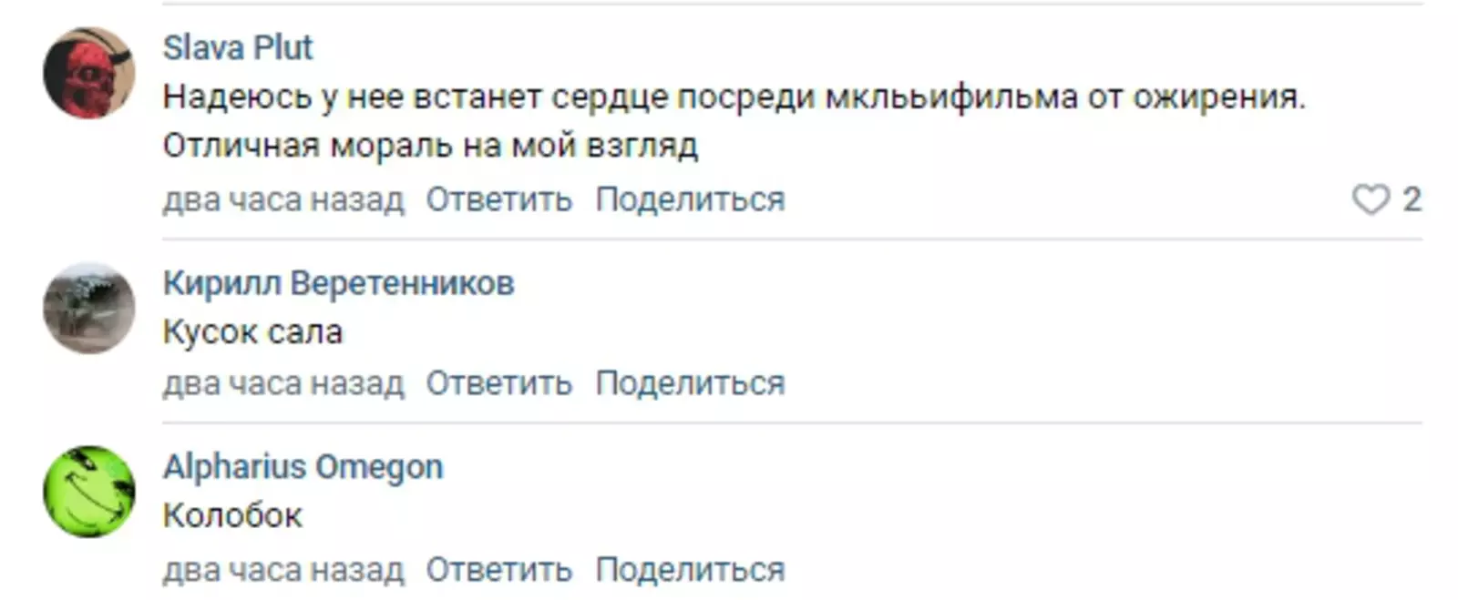 «Надеюсь, у неё встанет сердце посреди мультфильма от ожирения. Отличная мораль, на мой взгляд».