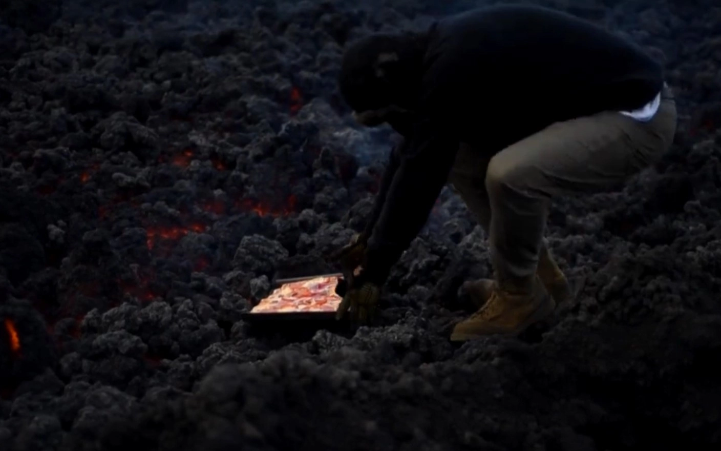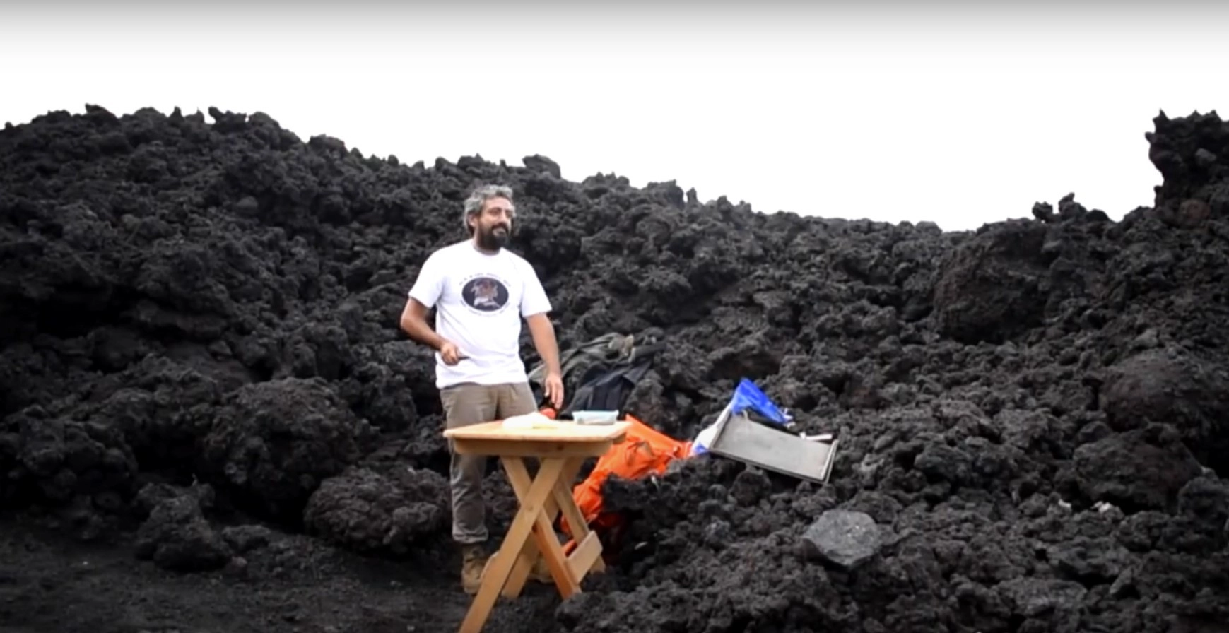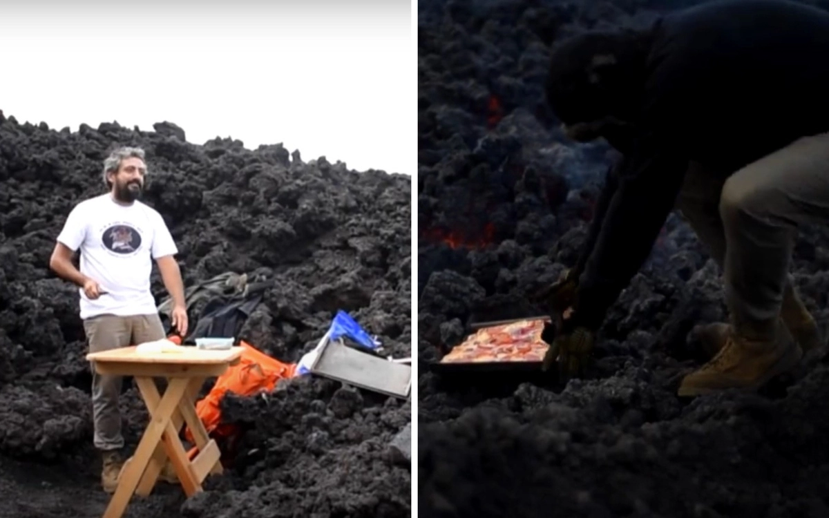 Когда вулкан начал извергаться в этом году, мужчина перенес свою импровизированную кухню в каменистую местность рядом с кратером и начал готовить прямо на лаве. Для готовки Дэвид надевает защитный костюм и использует специальные металлические листы, выдерживающие температуру до 982 градусов по Цельсию, пишет Daily Mail.