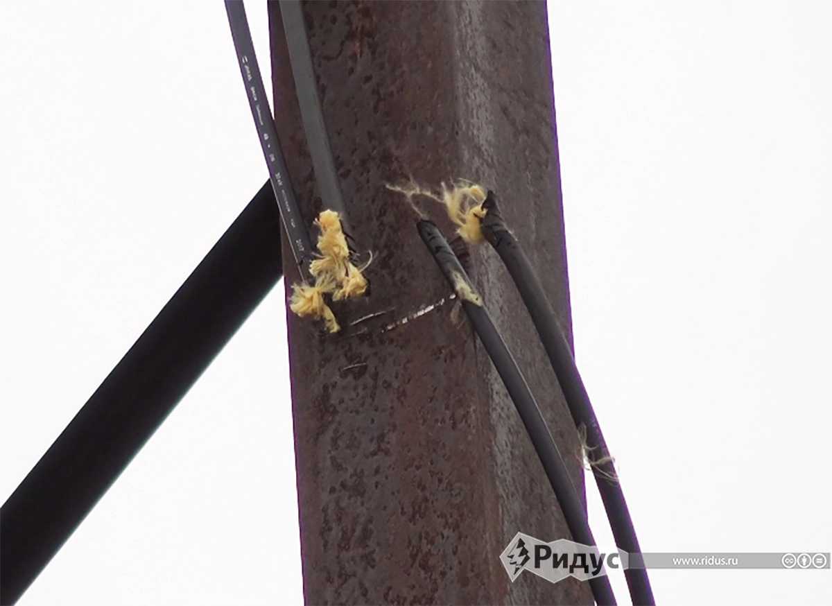 Оказалось, что кто-то просто перерубил топором провода на высоковольтной опоре. Позже выяснилось, что кабель был перерублен в двух местах, именно там, где находились открытые участки.