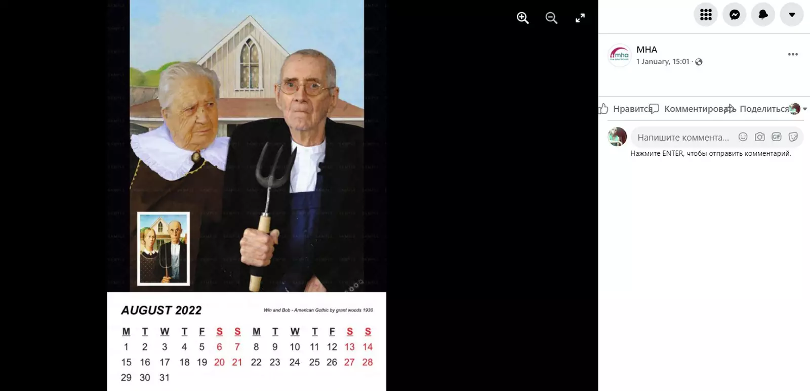 Недавно жители дома престарелых MHA Brookfield, расположенного в Оксфордшире (Англия), стали участниками необычной фотоссесии, в которой они примерили на себя образы героев известных картин, таких как «Американская готика» Гранта Вуда, «Дева Мария в молитве» Альбрехта Дюрера и многих других.