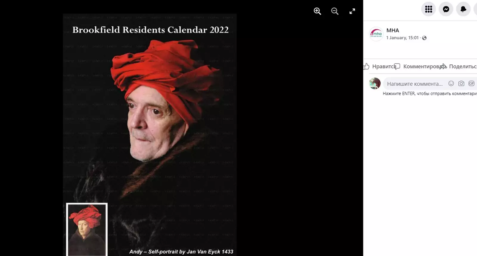 «Мне очень понравился стиль моей фотографии, и работать над ее созданием было так весело. Для моего костюма использовались скатерть и мех, и я был рад стать частью всего этого», — сказал 57-летний Эндрю Риз, изображавший героя картины Яна ван Эйка «Портрет мужчины в красном тюрбане».