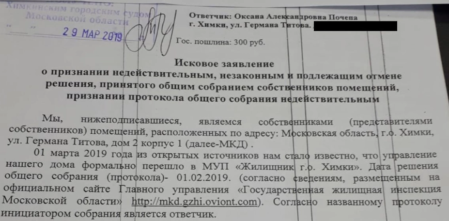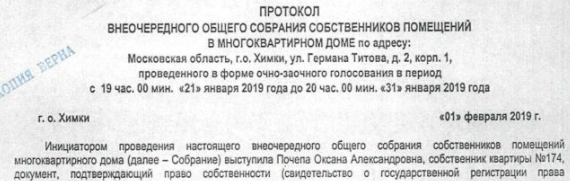 Спорный протокол общего собрания гласит, что дом № 2 корпус 1 по улице Германа Титова должен перейти в управление химкинского МУП «Жилищник». Ранее эту организацию уже обвиняли в «захвате» жилого комплекса на той же улице. Истцы добиваются отмены решения о смене управляющей компании.