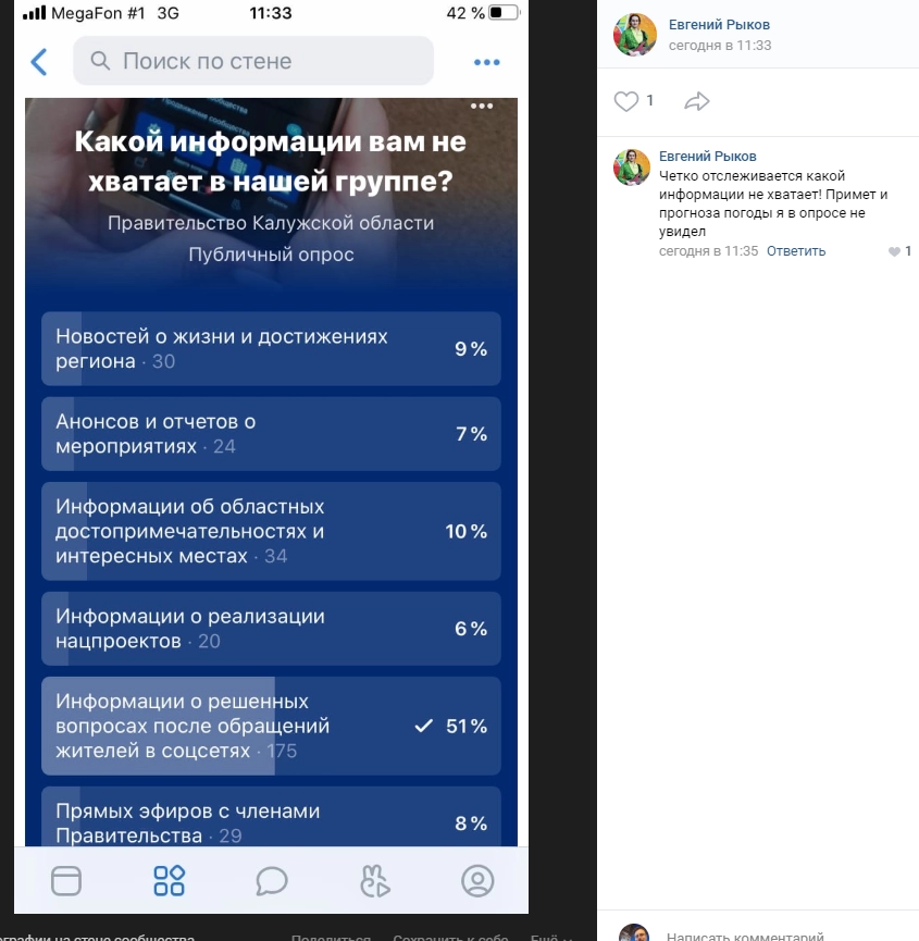 Впрочем, подписчики из Калужской области не оценили креатив сотрудников регионального кабмина, ответственных за связи с общественностью. В комментариях жители региона пишут, что «народные приметы» — слишком несолидный контент для странички правительства области. Граждане приводят даже результаты опроса, которые показывают, что они ждали от страницы совершенно не таких обновлений.