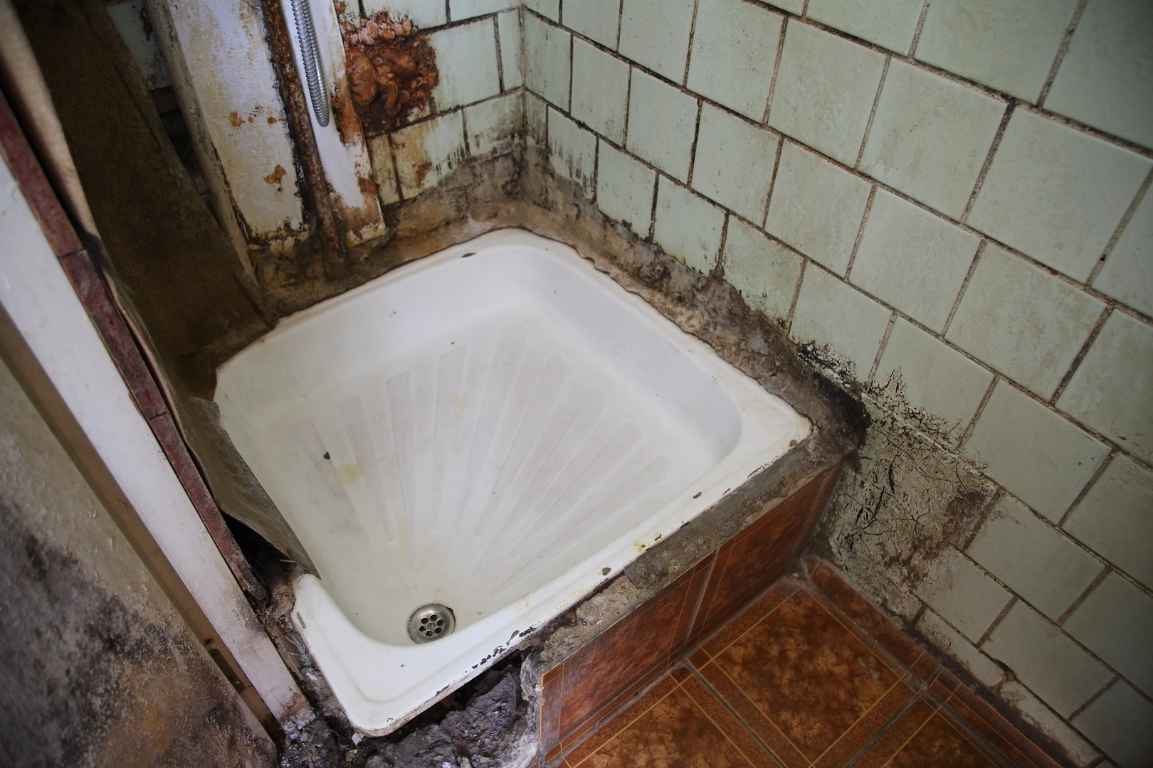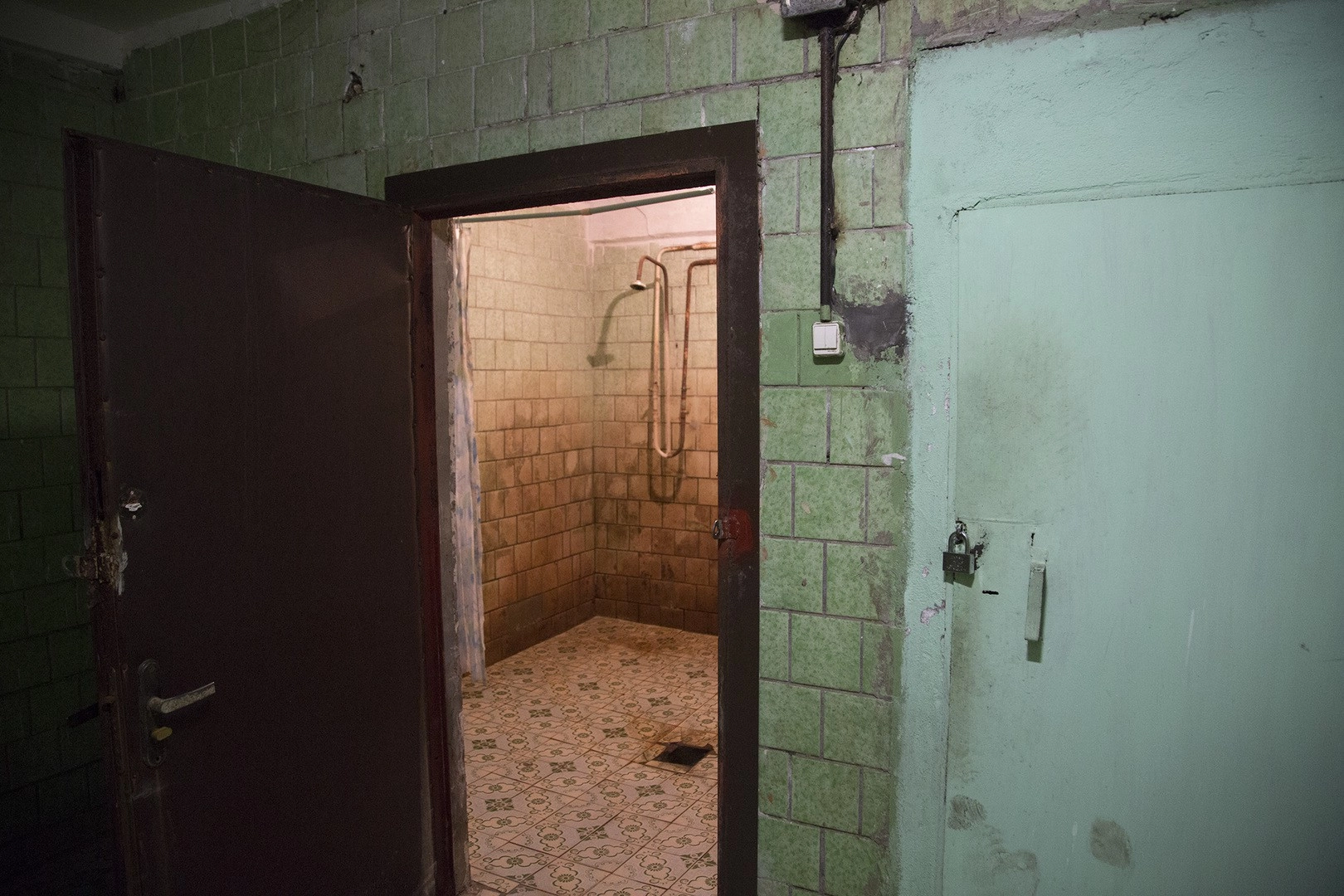 «Условия» — так жильцы называют туалет и самодельный душ — в другом конце коридора. Моются в «несанкционированном» душе редко — боятся затопить соседей, обычно только купают детей. «Взрослый» душ находится в подвале и радует глаз разбитым кафелем и гроздьями плесени. Во влажном закрытом помещении без нормальной вентиляции грибок чувствует себя просто прекрасно, чего не скажешь о людях.