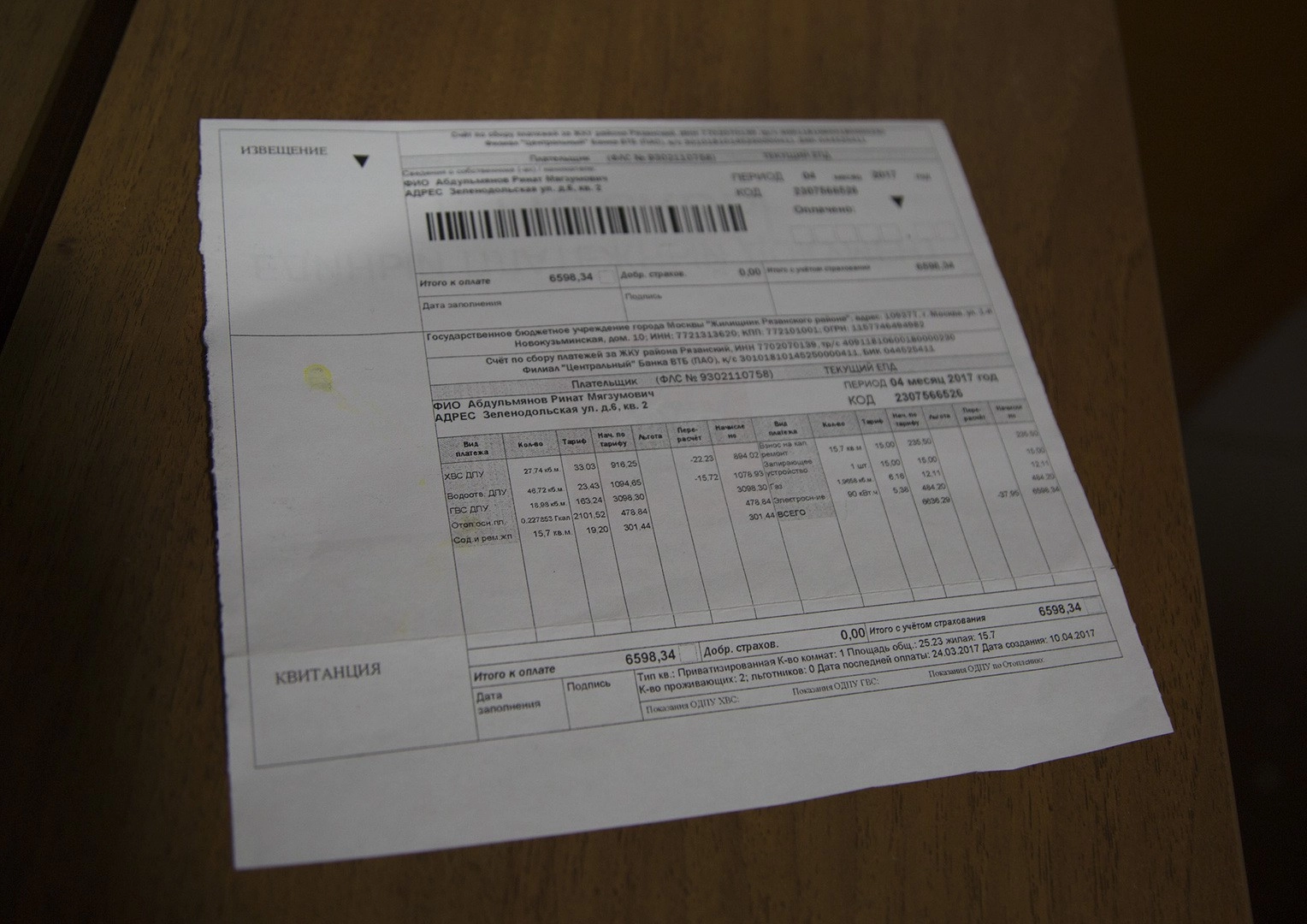 Но самое главное, что дикие условия проживания никак не отражаются на квартплате. За апрель одной семье пришла квитанция на 6,5 тысяч — управляющая компания рассчитывает «коммуналку» по нормативу, за каждый квадратный метр, а площадь коридора делит на всех.