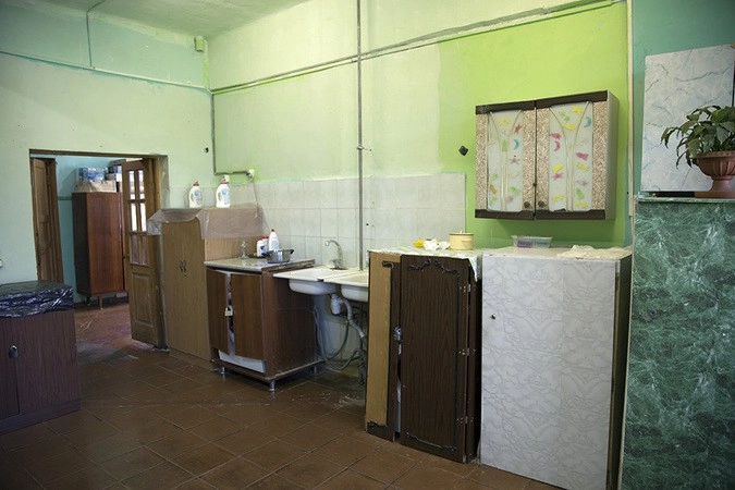Стены покрасили совсем недавно, но буквально через несколько дней краска начала облезать жуткими серо-зелеными лохмотьями. «Пришли маляры, что-то красят. Я говорю: „Господи, вы хоть бы пыль смахнули“. Они: „Как платят, так и красим“», — жалуется Анна Бугоркова.