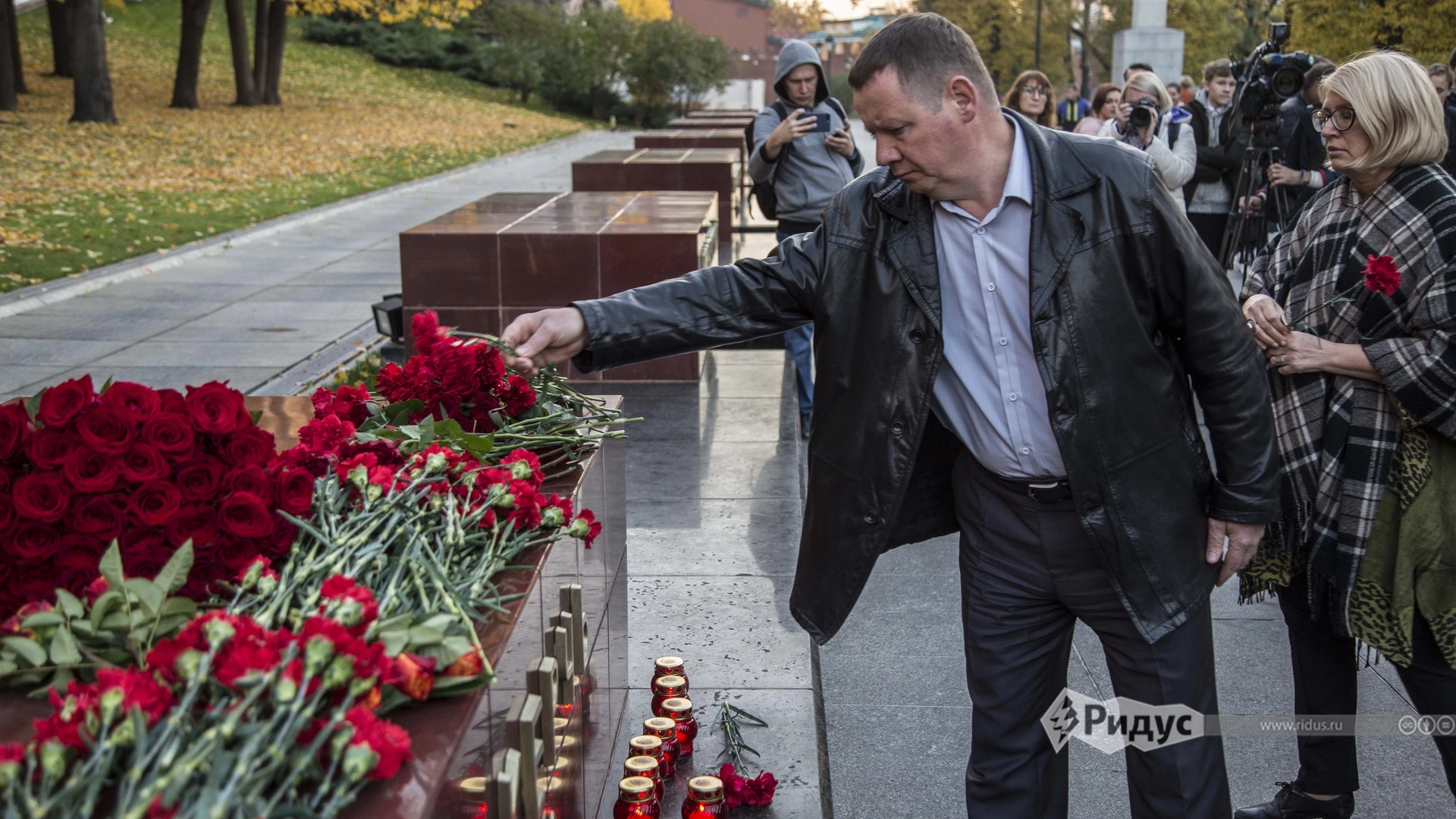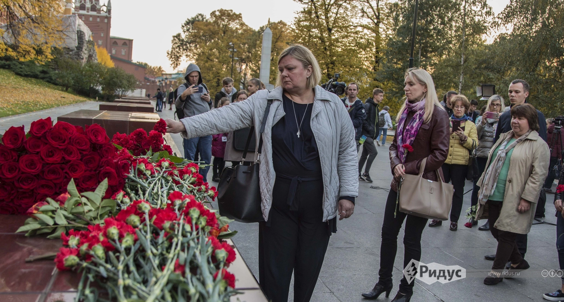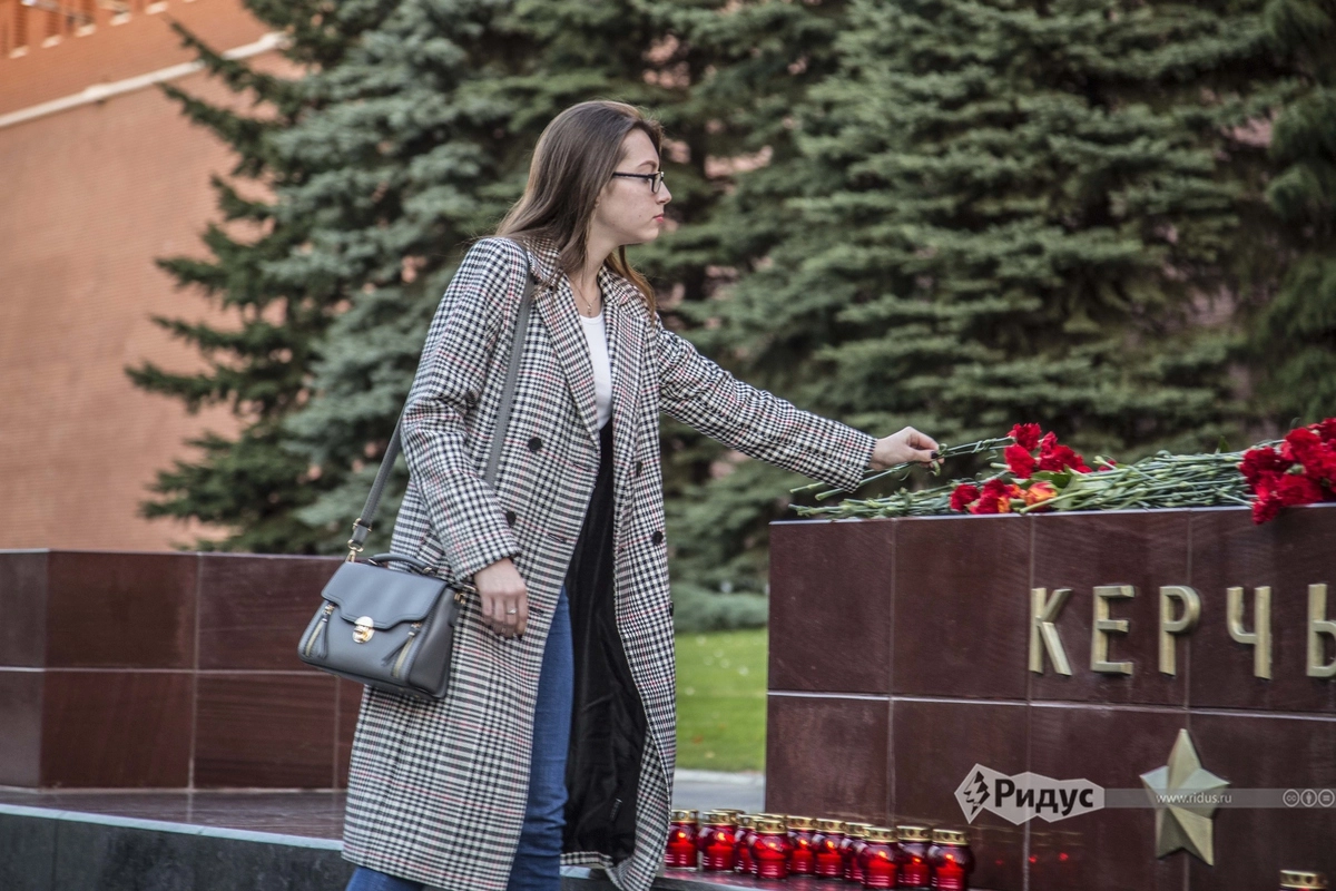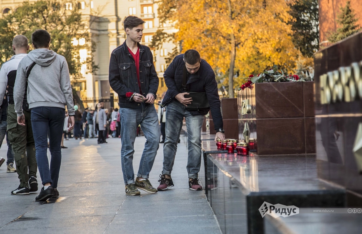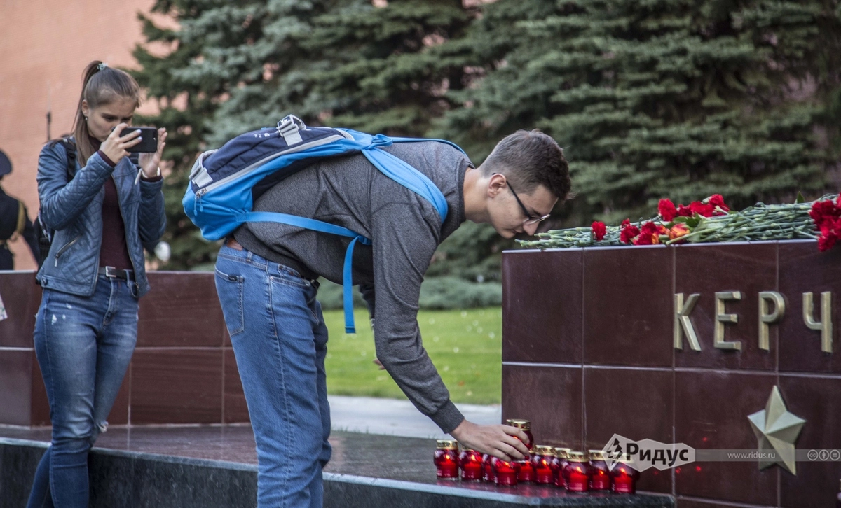 Вечером 17 октября, в день трагедии в Керчи, москвичи и гости столицы возложили цветы в память о погибших.