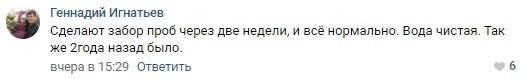 Тем не менее жители округа относятся к официальным проверкам состояния воды в Печоре с подозрением. По их словам, опыт взятия проб из загрязненных мест «для галочки» с последующей отпиской в регионе уже наработан.