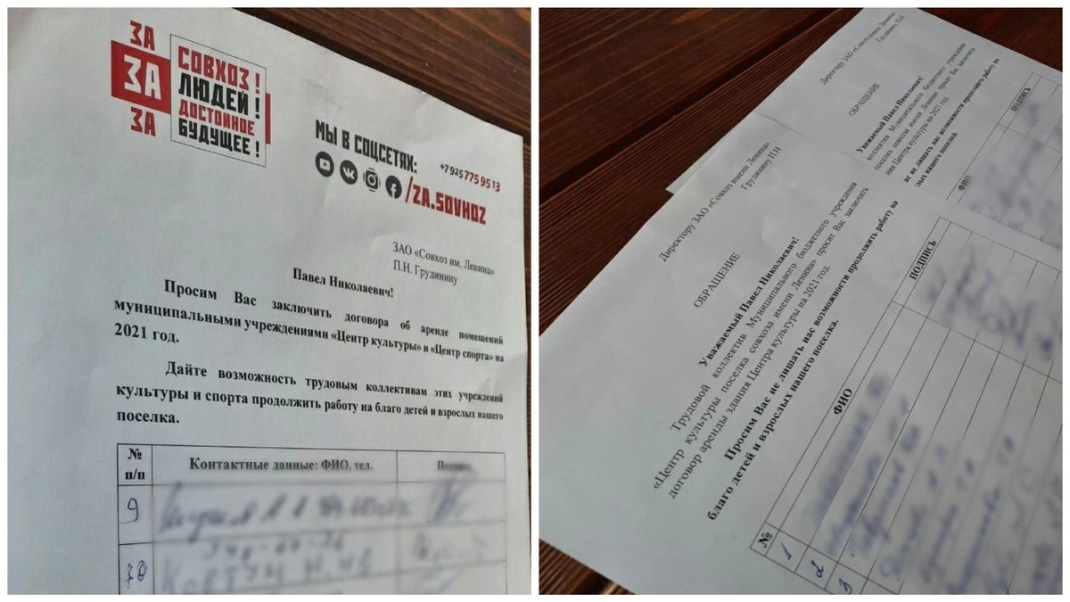 Работники Дворца культуры собрали подписи под открытым обращением к Грудинину: коммерсанта призывают одуматься и не лишать жителей поселка годами работавших детских кружков. Текст обращения и приложенные к нему подписные листы будут переданы в офис ЗАО «Совхоз им. Ленина».