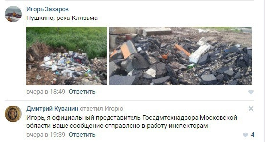 Отчаявшись, активный звягинец написал о проблеме на страничке губернатора Московской области Андрея Воробьева «ВКонтакте». На обращение оперативно отреагировал Гостехадмнадзор.