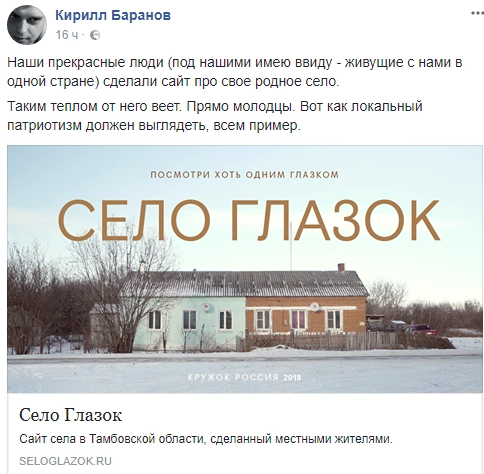 В соцсетях набирает популярность сайт, который создали жители небольшого села Глазок Тамбовской области.
