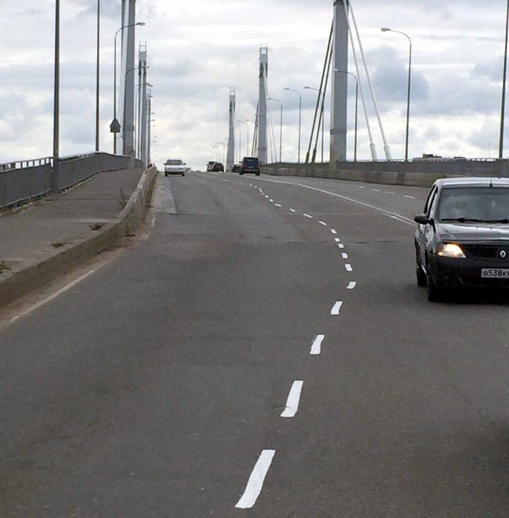 Впрочем, власти современного искусства на мосту не оценили, заставили рабочих вручную закрасить прерывистую черной краской. Дорожникам же теперь предстоит вторая попытка нанесения художеств.