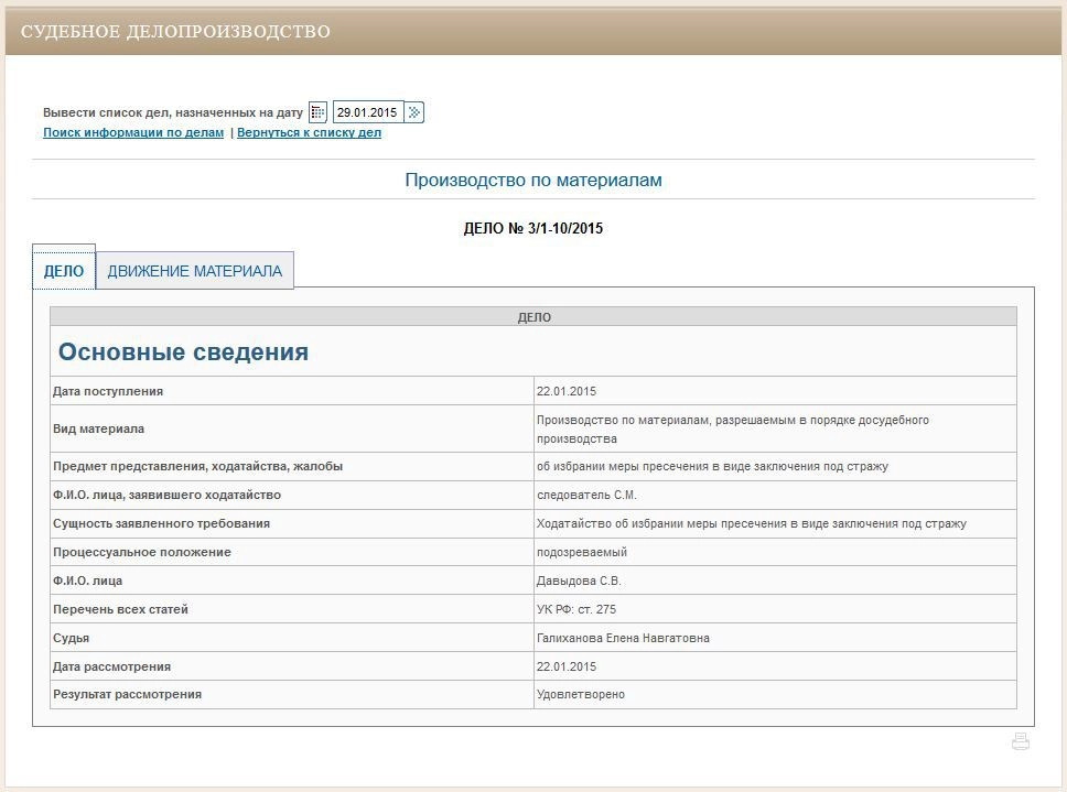 Оказалось, к сведению информацию приняли и в Федеральной службе безопасности, поскольку 21 января Светлана была арестована, а затем этапирована в Москву и заключена под стражу по обвинению, предусмотренному 275 статьей УК РФ, что подтверждается опубликованными материалами Лефортовского районного суда г. Москвы.