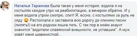 «Чувствую, машину как-то болтает. Смотрю на дорогу и вижу, что летим мы на все красные из стороны в сторону! Пешеходы на свой законный зелёный прут, а мы прямо на них! Рассыпаются граждане в разные стороны, кулаками грозят, вот и бабка уже клюкой машет. А водила спит!!!» — пишет пассажирка на своей странице в Facebook.