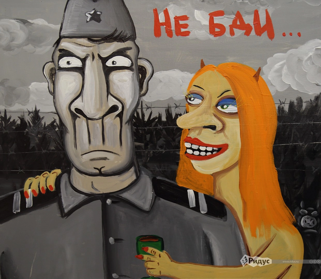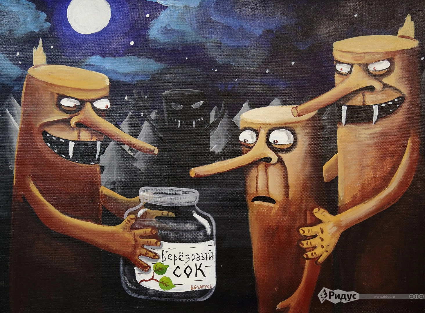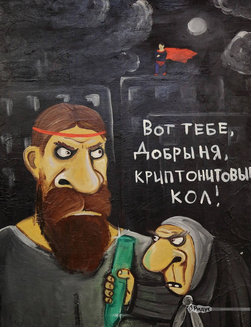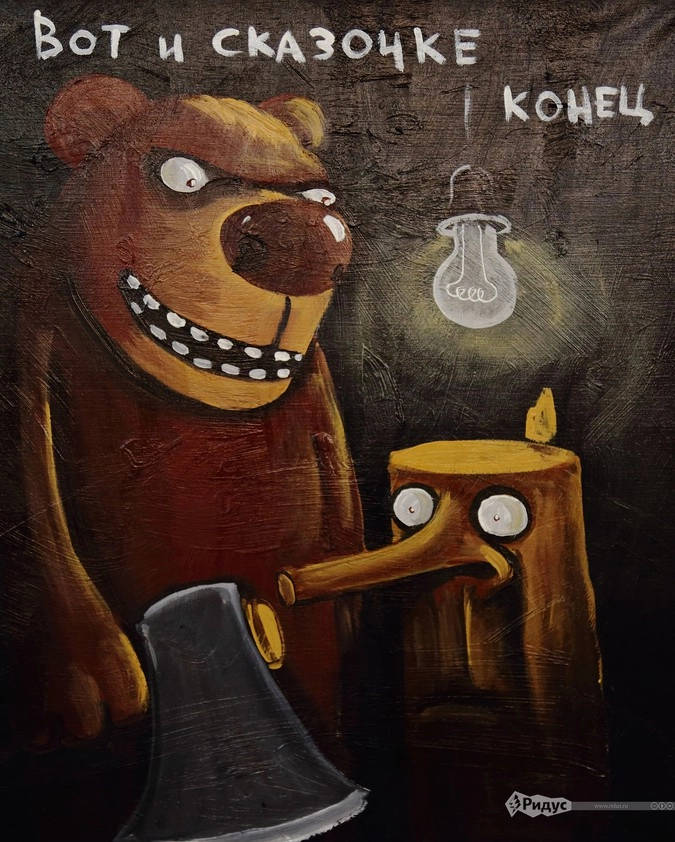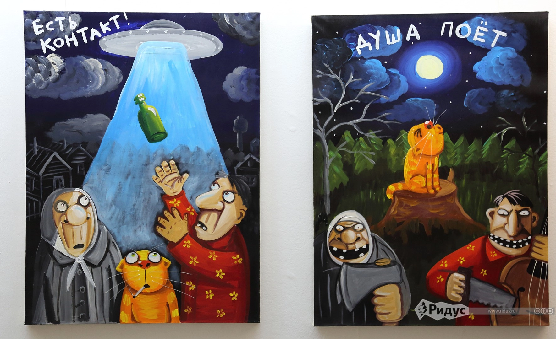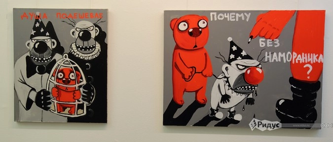 «Художник работает в жанре своеобразного антилубка, где условность изображения и широкое использование сказочных или, вернее, псевдосказочных атрибутов сочетается с повседневной, злободневной сегодняшней действительностью», — говорят, приподняв бровь, специалисты ЦДХ.