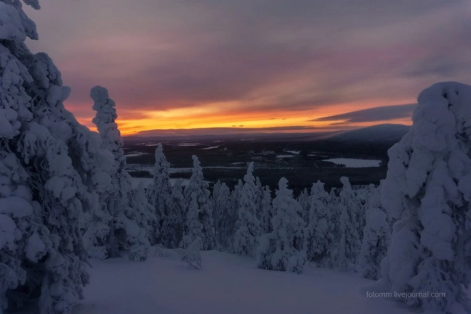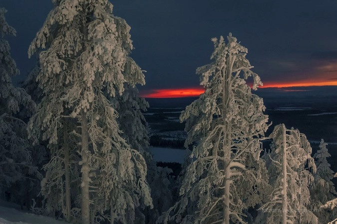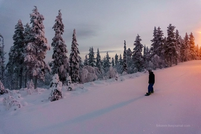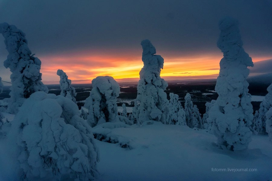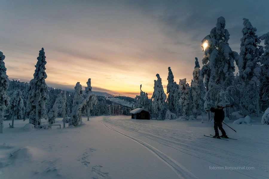 Горнолыжный курорт Леви, один из крупнейших в Финляндии, чем-то напомнил наш Шерегеш. Хотя понятно чем — вот этими самыми заиндевевшими елками, согнувшимися под тяжестью снега и льда.