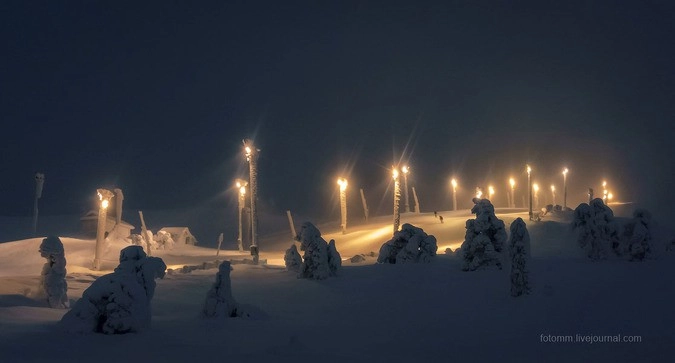 Трассы отлично освещены, причем сделано это так красиво — фантастическая картинка получается. И что самое прикольное — можно кататься не по самой трассе, а рядом с ней, по лесу, среди тех самых елок.