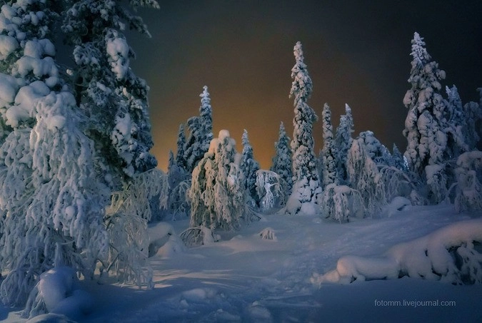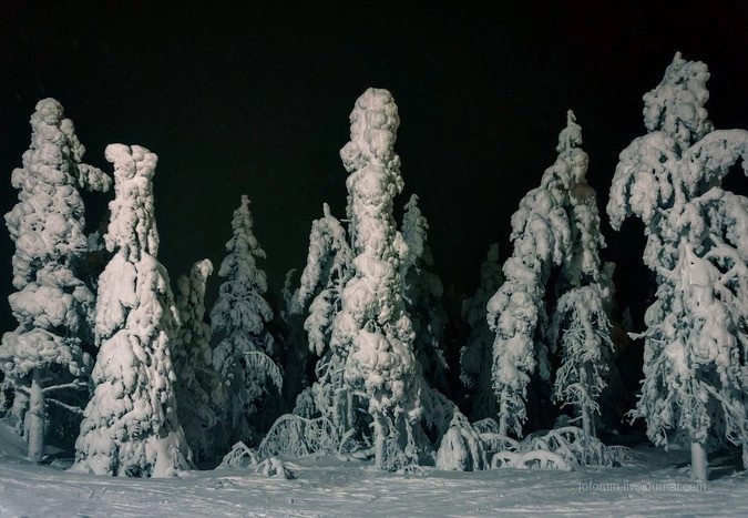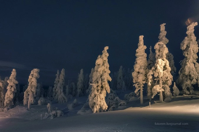 Вряд ли я смог бы так подсветить елки, имея при себе даже дюжину фонариков. А тут все готовенькое — просто наводи камеру и снимай ! Хотя штатив конечно не помешает.