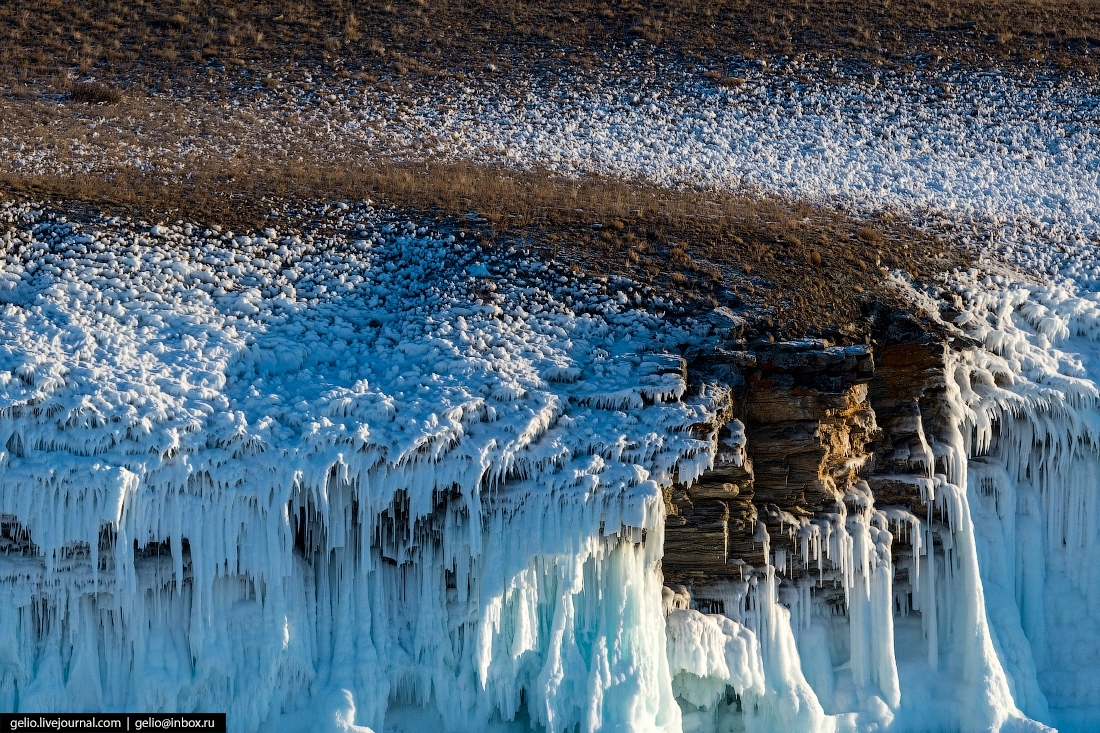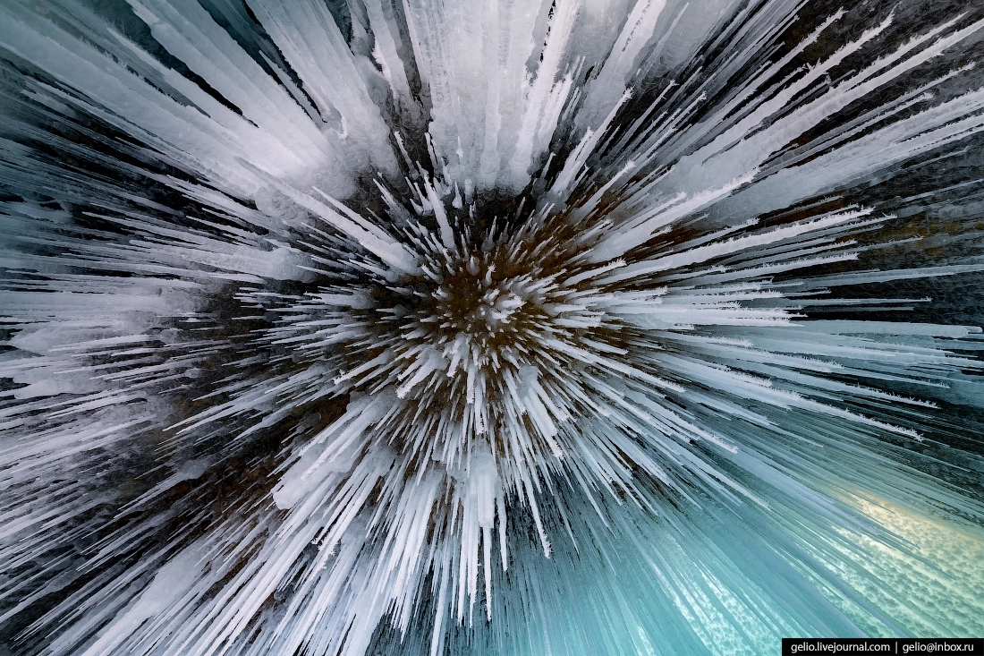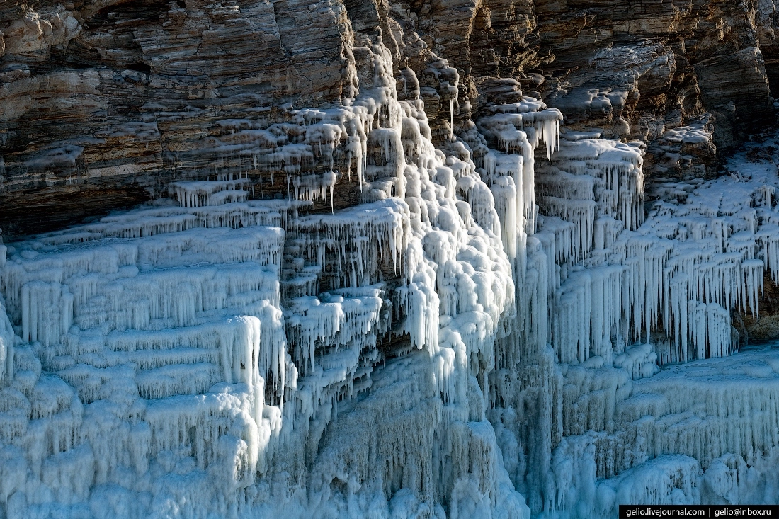 Со временем они утолщаются и вдоль берега озера появляется вал, а скалы покрываются ледяным панцирем из непрозрачного, пористого льда.