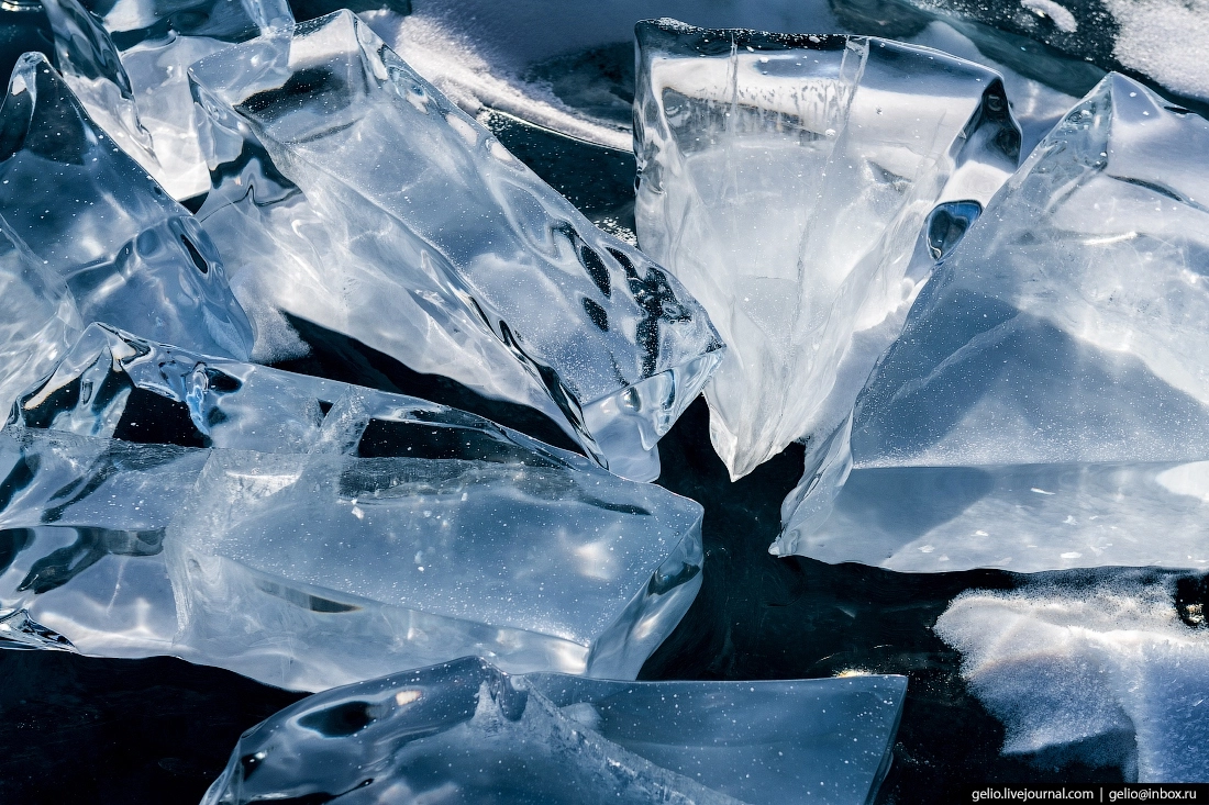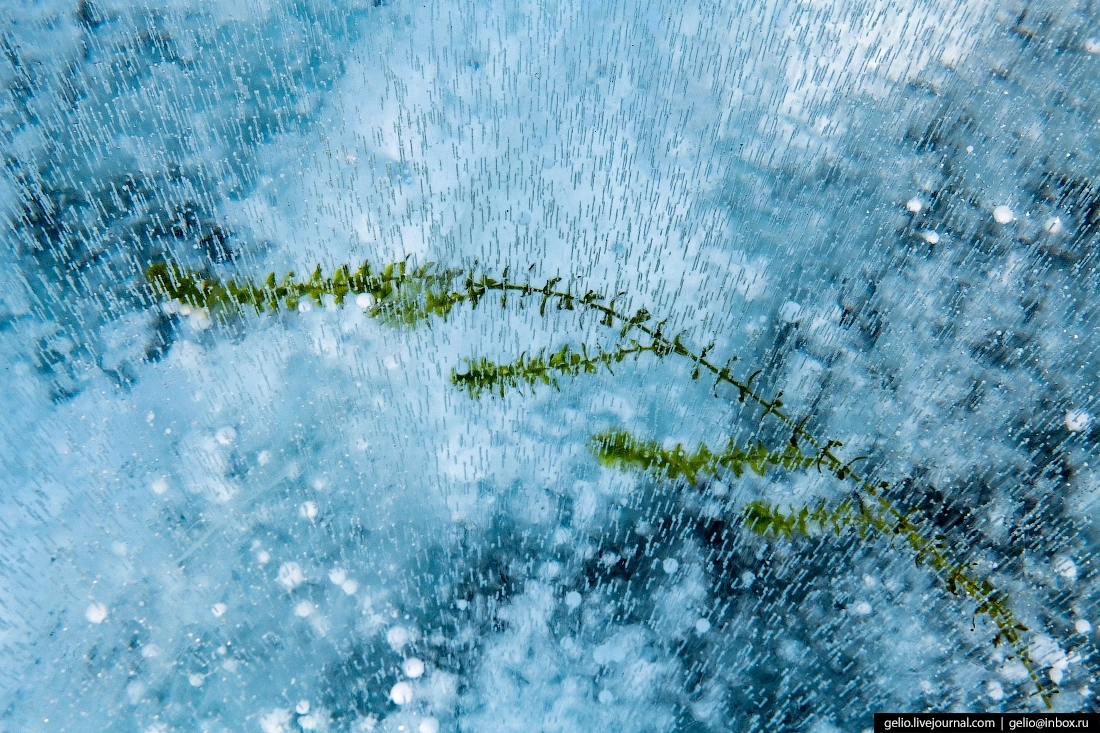 Байкальский лёд настолько чистый и прозрачный, что на мелководье сквозь него можно разглядеть дно. В толщу воды проникают солнечные лучи, поэтому жизнь под ледовым покровом не замирает — там развиваются водоросли и зоопланктон.