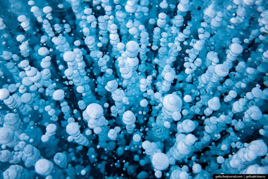 В Байкале растворено около 800 тонн метана. Парниковый газ, который поднимался со дна, не успел выбраться на поверхность и мгновенно вмёрз в лёд. Если проткнуть такой пузырь и поджечь, вспыхнет лёгкое и почти не дымящее пламя.