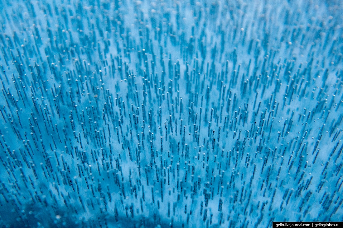 На фоне тёмных глубин эти застывшие пузырьки выглядят космически — как будто смотришь фрагмент из Star Trek.