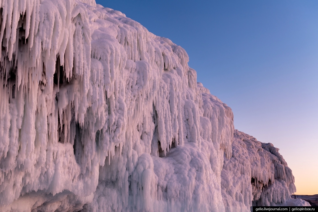 Ледяные наплески на прибрежных скалах называются сокуи.