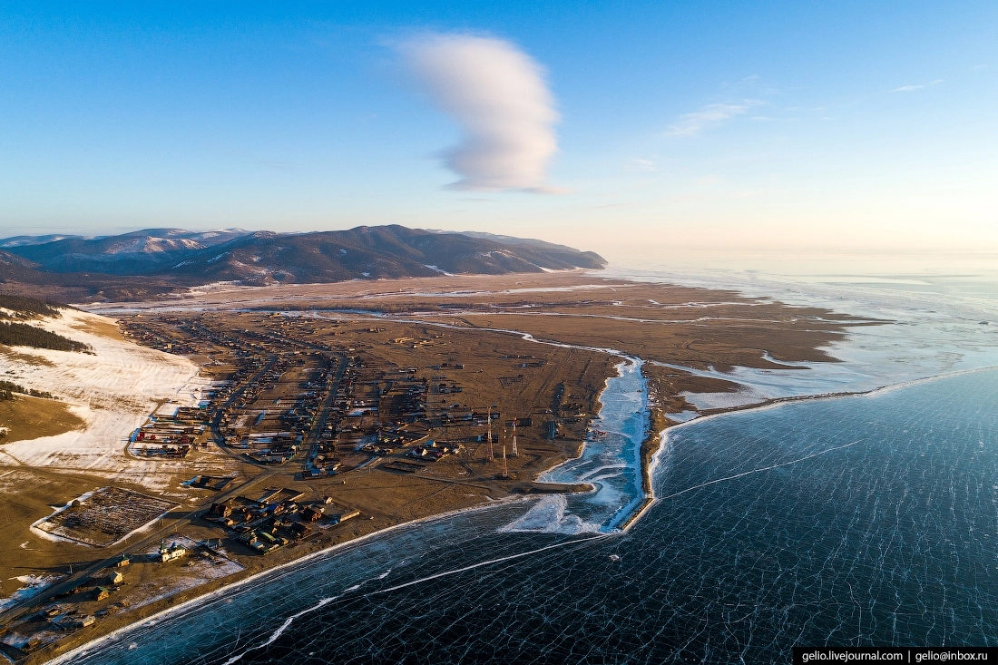 Посёлок Большое Голоустное на западном побережье озера. Это один из туристических центров на Байкале. Для отдыхающих здесь построены отели, турбазы и стоянки, а в округе проложены экомаршруты.