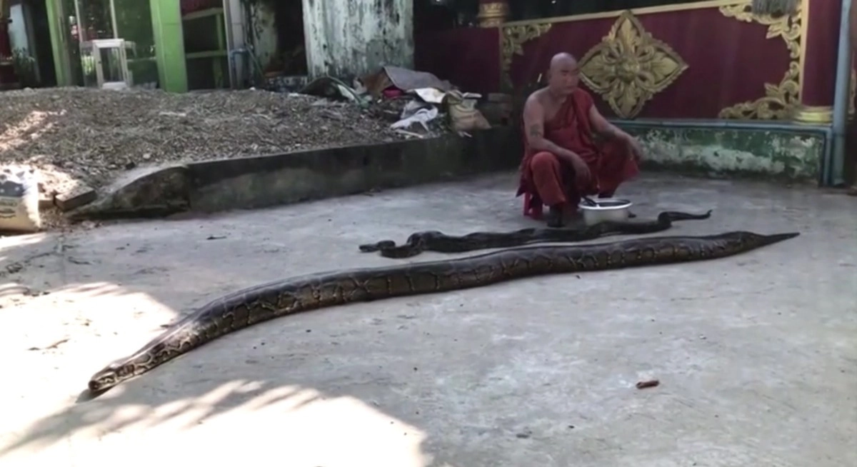 Но 69-летний буддийский монах Вилата из Мьянмы не только не боится змей, но и нежно о них заботится. Монах создал для них настоящий приют в монастыре Сейкта Тхукха Тето, который существует за счет пожертвований.