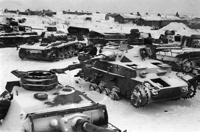 Подбитые немецкие танки на окраине Сталинграда