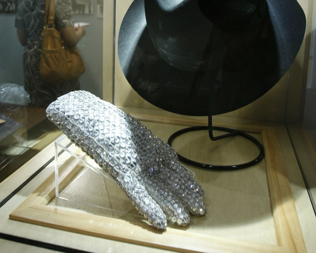 Украшенный кристаллами «Сваровски» аксессуар, который Майкл Джексон надевал во время выступлений и съемок клипов, стал одной из визитных карточек артиста.