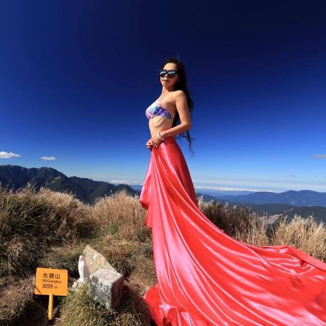 У Цзиюнь стала блогером, когда проиграла спор и ей пришлось сфотографироваться на вершине горы в купальнике. С тех пор она совершила десятки таких восхождений и каждый раз она запечатлевала себя в бикини.