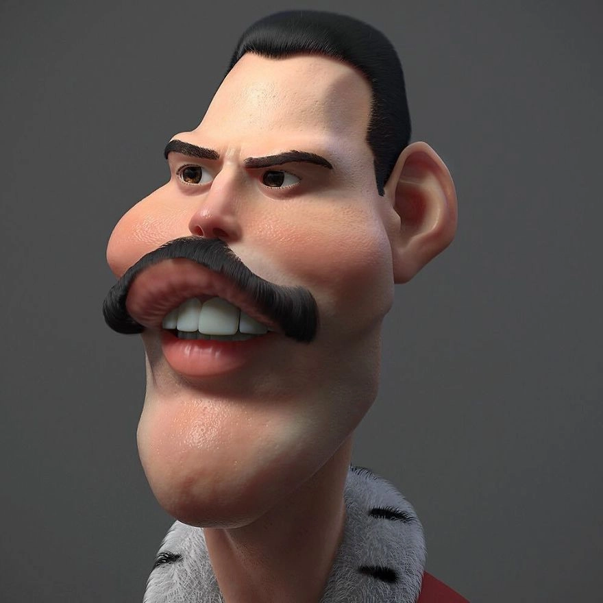 Бразильский художник Густаво Соареш (Gustavo Soares) любит создавать 3D-портреты популярных мульт- и киноперсонажей. Недавно он также нарисовал некоторых знаменитостей, продемонстрировав свой талант во всей красе. Недаром Густаво приглашают к участию в своих проектах такие гиганты, как Dreamworks и Nickelodeon. Сам художник говорит, что в своём мультяшном творчестве вдохновляется работами мастеров Чинквеченто, а именно Леонардо да Винчи и Рафаэля Санти.