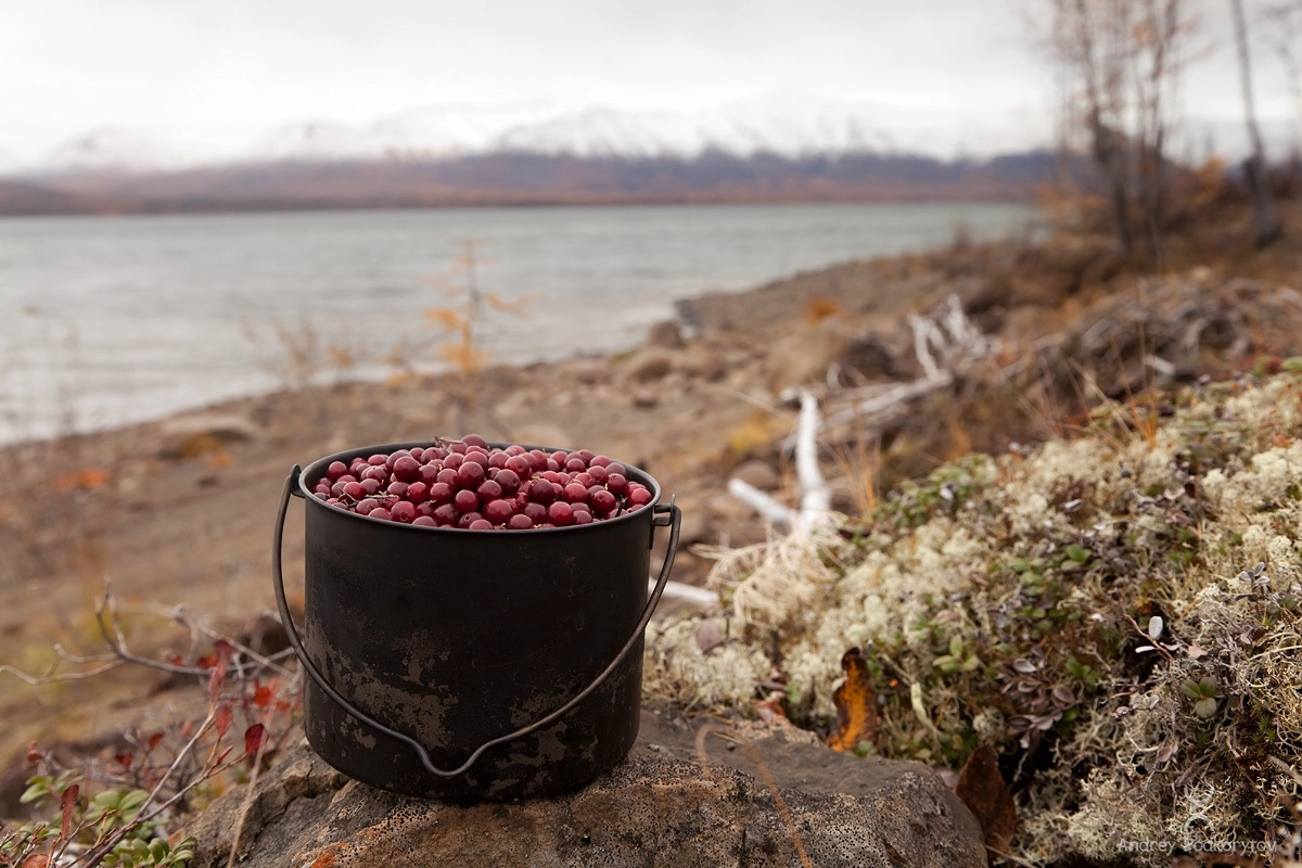 В погодное окошко для выброски примчался Илья Калинский (https://www.instagram.com/korikalinskiy/). Он привёз показавшийся мне вначале огромным пакет с пирожками и другой едой (первое впечатление обманчиво, к Норильску ничего не осталось) и сказал, что у нас небольшое окно в 2−3 часа, и что в конце Глубокого и на Мелком немного потрясёт. Я не трус, но… трясло значительно сильнее, чем мне бы хотелось. Визуально не страшный с берега шторм с короткой северной волной преображается, если идти по середине озера на лодке под водомётом. Если бы не выехал в это окно — можно было застрять там ещё на неделю. Брусники бы хватило, а вот рыба кончилась.