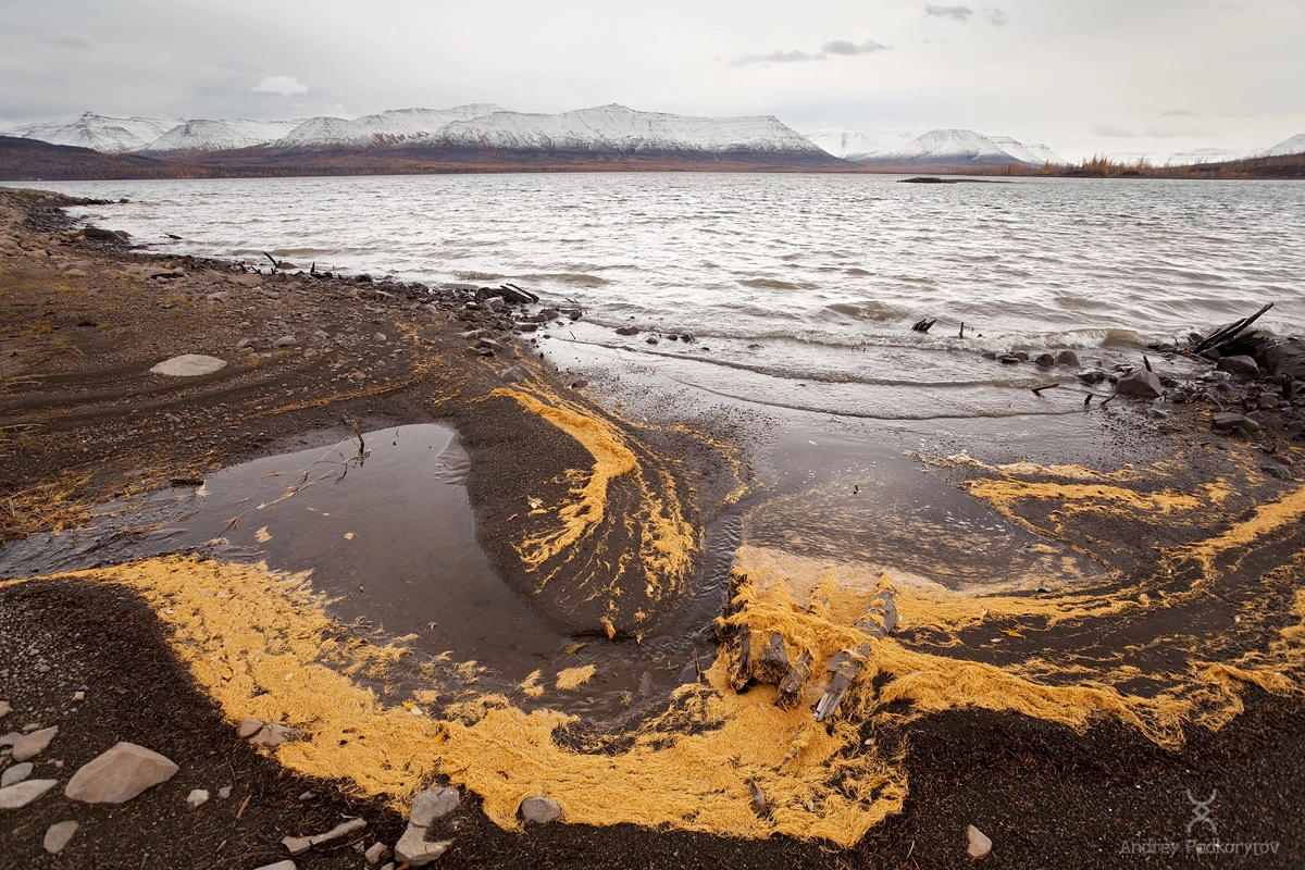 Торопился не только на любимую работушку. 28 сентября была запланирована лекция в рамках фестиваля Золотая черепаха (http://www.wnfest.ru/), а презентация, как водится, была не готова. По плану было 25-го сентября утром прилететь из Норильска в Москву, а на деле 25-го утром я ещё был в восточной части озера Глубокого в 110 км от Норильска с непонятными перспективами выброски. Тем утром на Глубоком после двух дней шторма был самый нежный штиль, какой только возможен. Спасительное смс о том, что за мной выехали, пришло ближе к обеду.