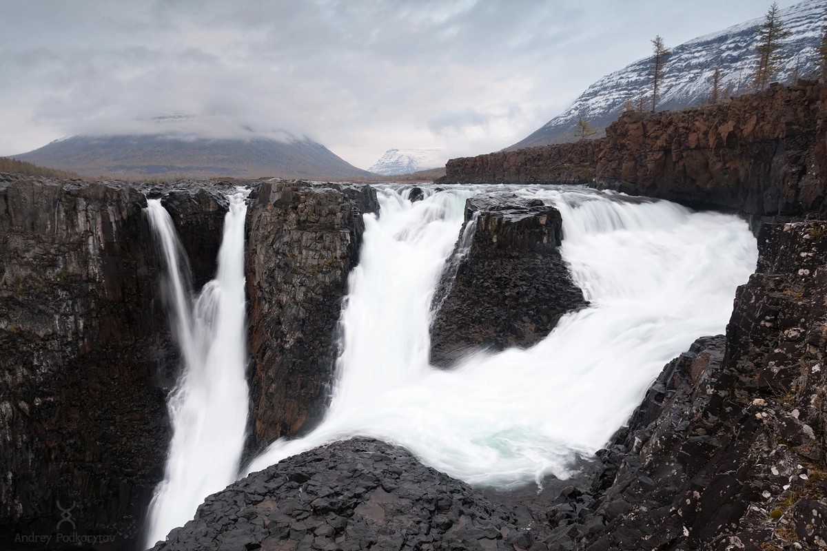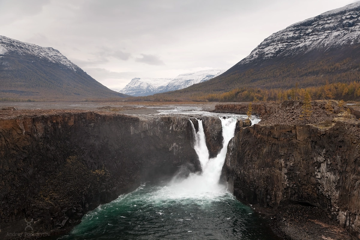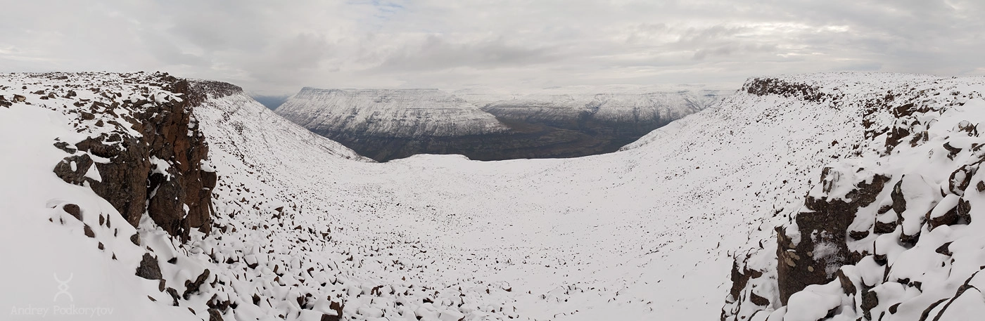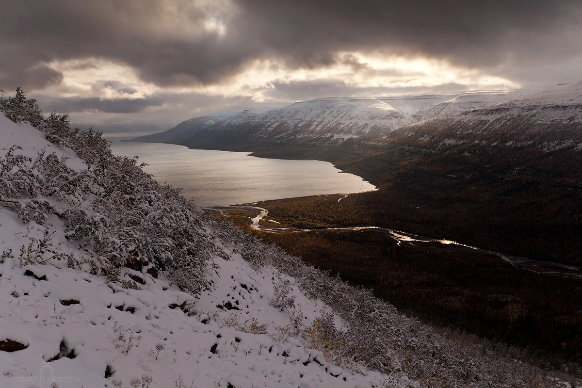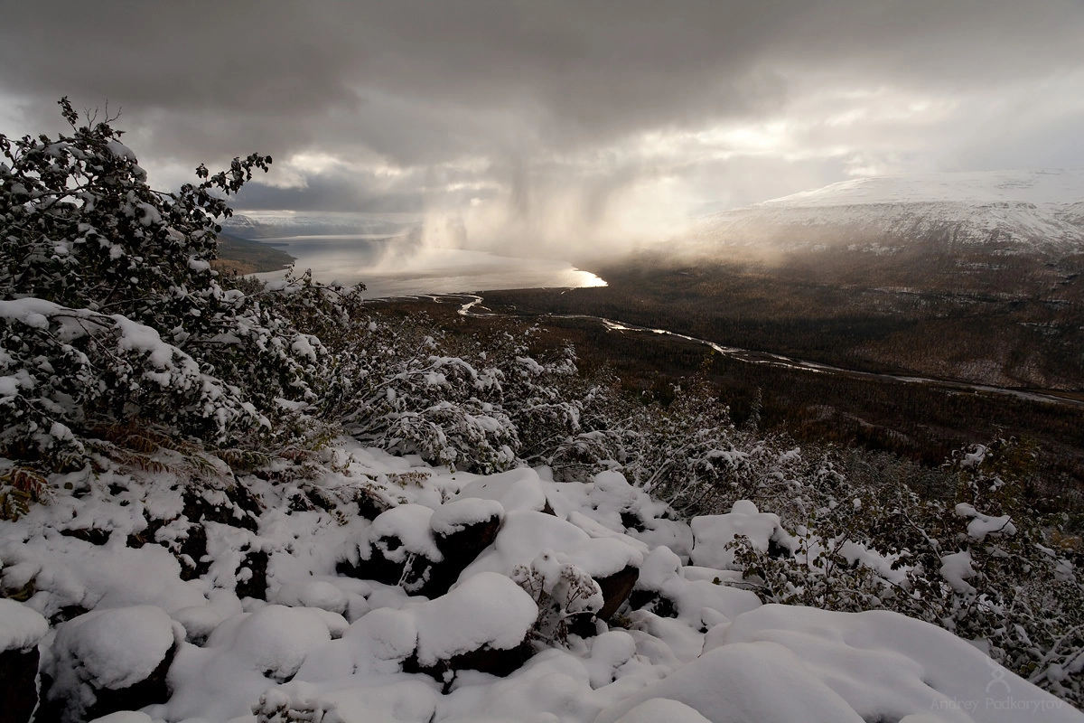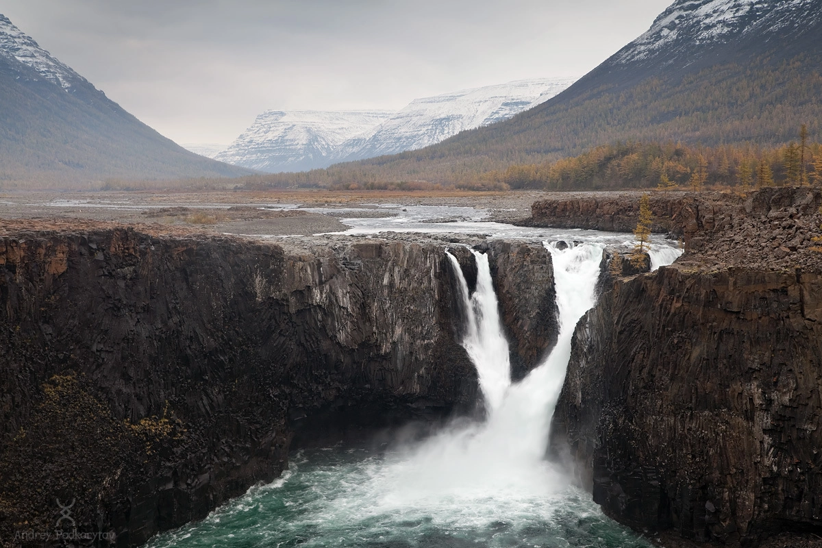 По съёмке с воздуха планы реализовались далеко не все. Батареи некстати дружно чудили. Когда можно было летать — спасал коптер в каньоне, когда был готов летать — слушал сильные порывы ветра… По-другому поздней осенью — это жить на тёплой базе, вкусно есть и ходить вокруг неё. Тоже неплохо, но не для седьмого раза. Будьте вежливы в гостях, дружите со своей техникой, сохраняйте в смартфон кэш видео, имейте спутниковый навигатор и не летайте летайте аккуратно в каньонах плато Путорана. Осень на маршруте получилась поздней. Окружение слегка смурное и задумчивое (не слегка). Если не придираться, в целом, вышло хорошо: комаров нет, снег есть, ночью наверху до -8 тепла, а внизу почти постоянно дождь и ветер. Вокруг всё серенькое, блёклое и туманное. Свой колорит найти можно. Если постараться.