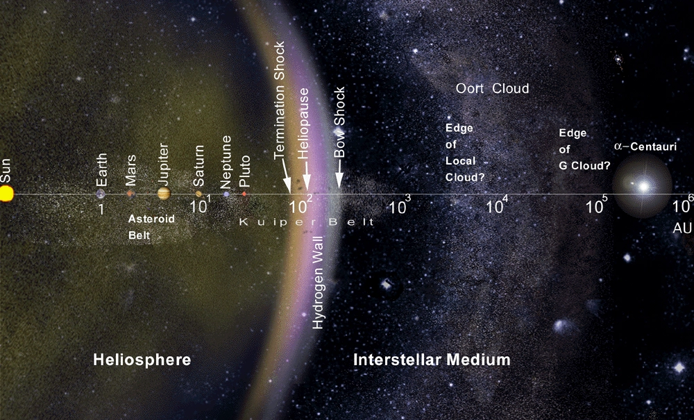 До пояса Койпера — 50 а. е. Прибавьте к этому еще около 70 астрономических единиц — и мы подходим к первой условной границе Солнечной системы, которую и пересекли «Вояджеры».