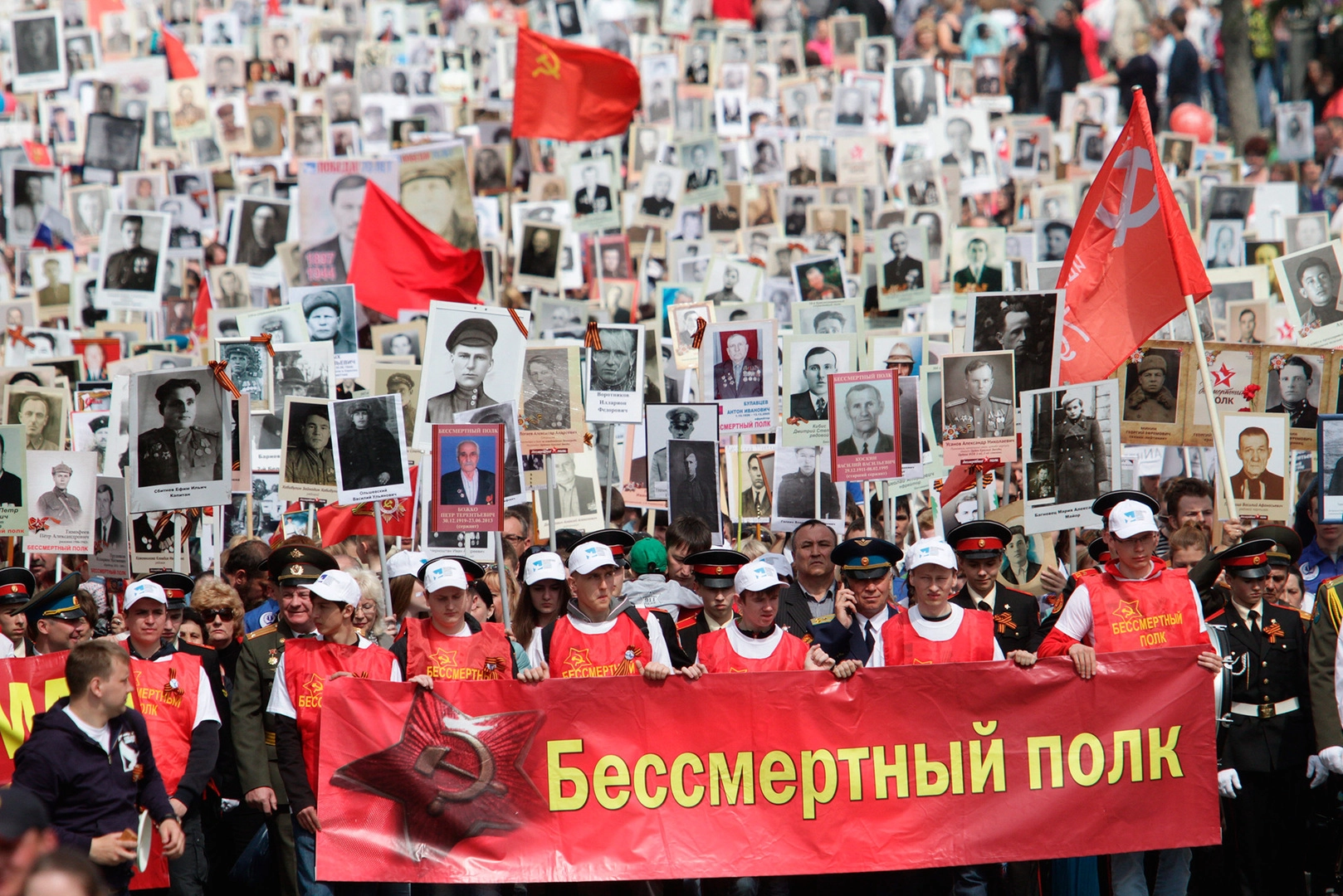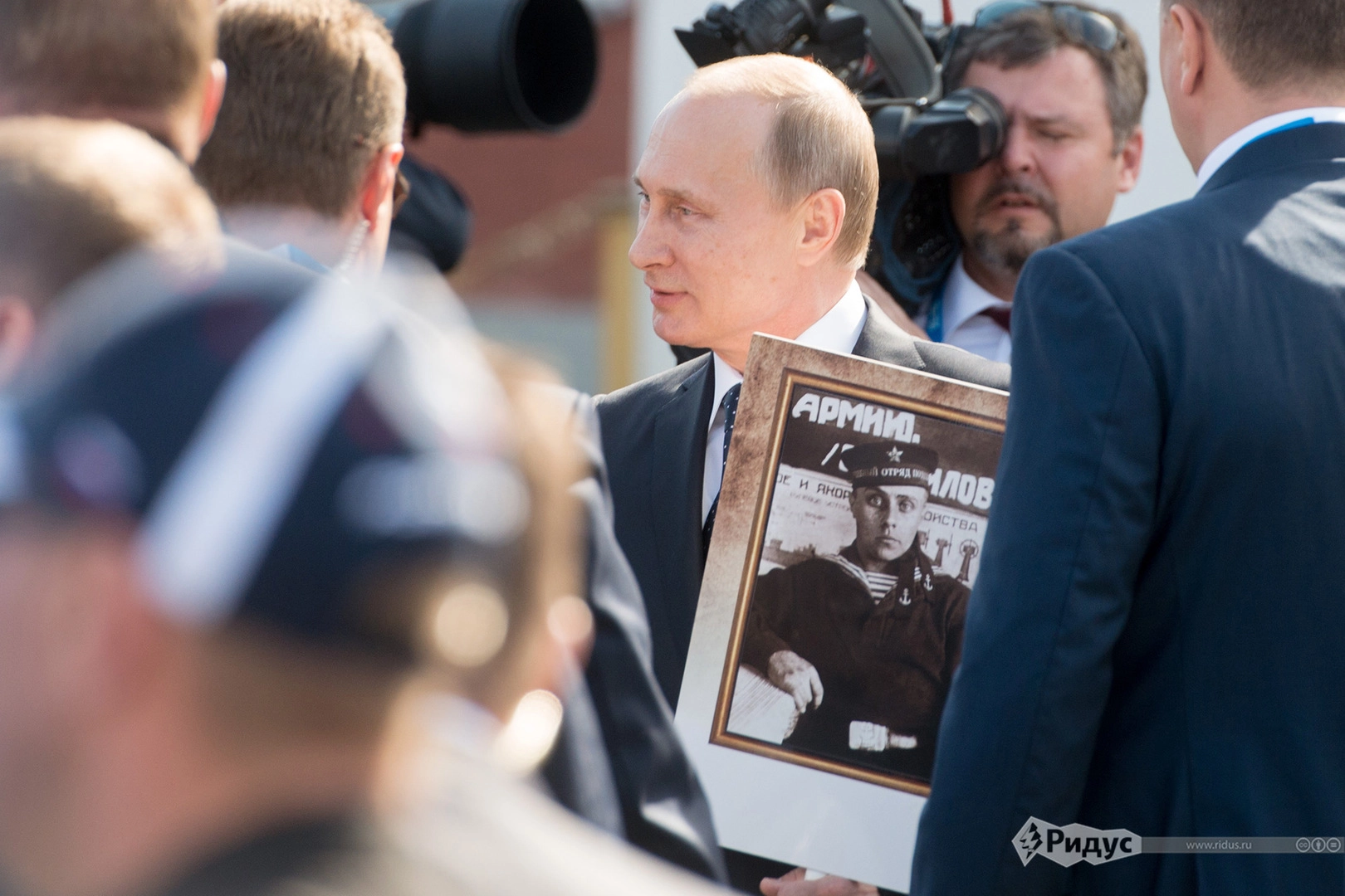 В Москве «Бессмертный полк» собрал более полумиллиона человек. Когда многотысячная колонна вышла на Красную площадь, праздничное шествие возглавил президент России Владимир Путин. Глава государства держал в руках портрет своего отца-фронтовика.