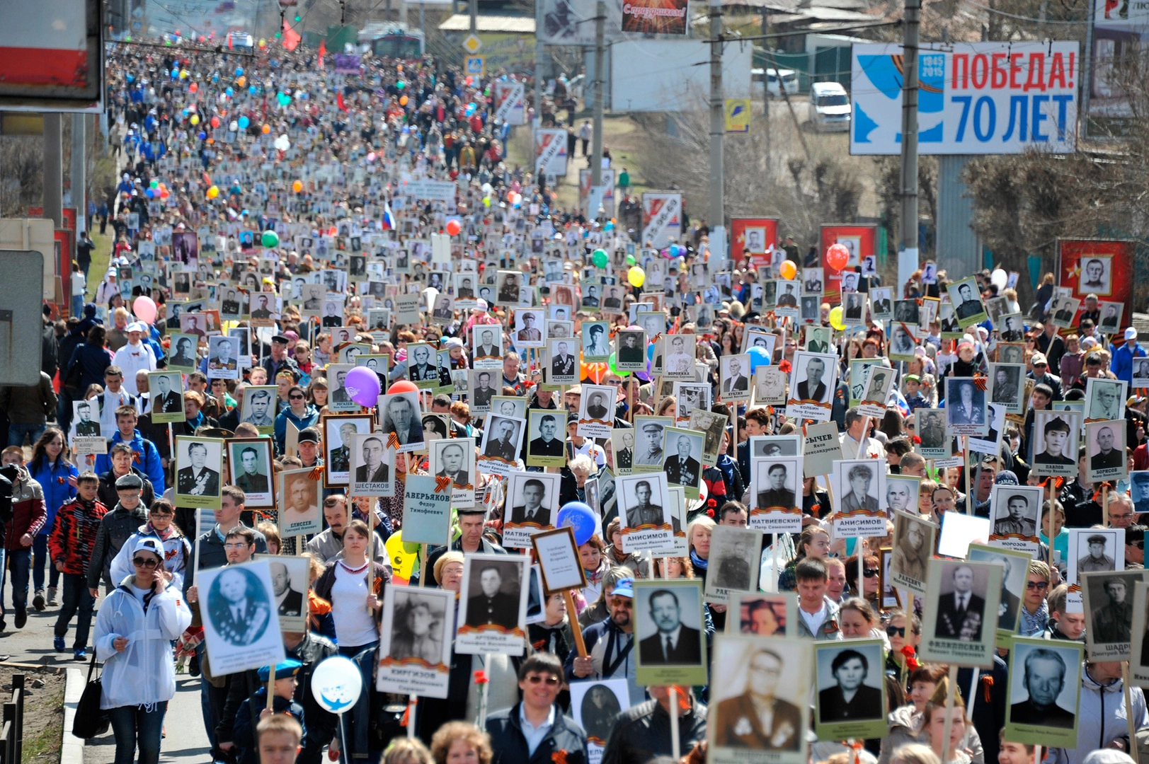 В юбилей Великой Победы в Великой Отечественной войне в городах России, ближнего и дальнего зарубежья прошел марш «Бессмертный полк». Более миллиона человек, участвующих в акции, вышли на марш с портретами своих родственников-фронтовиков.