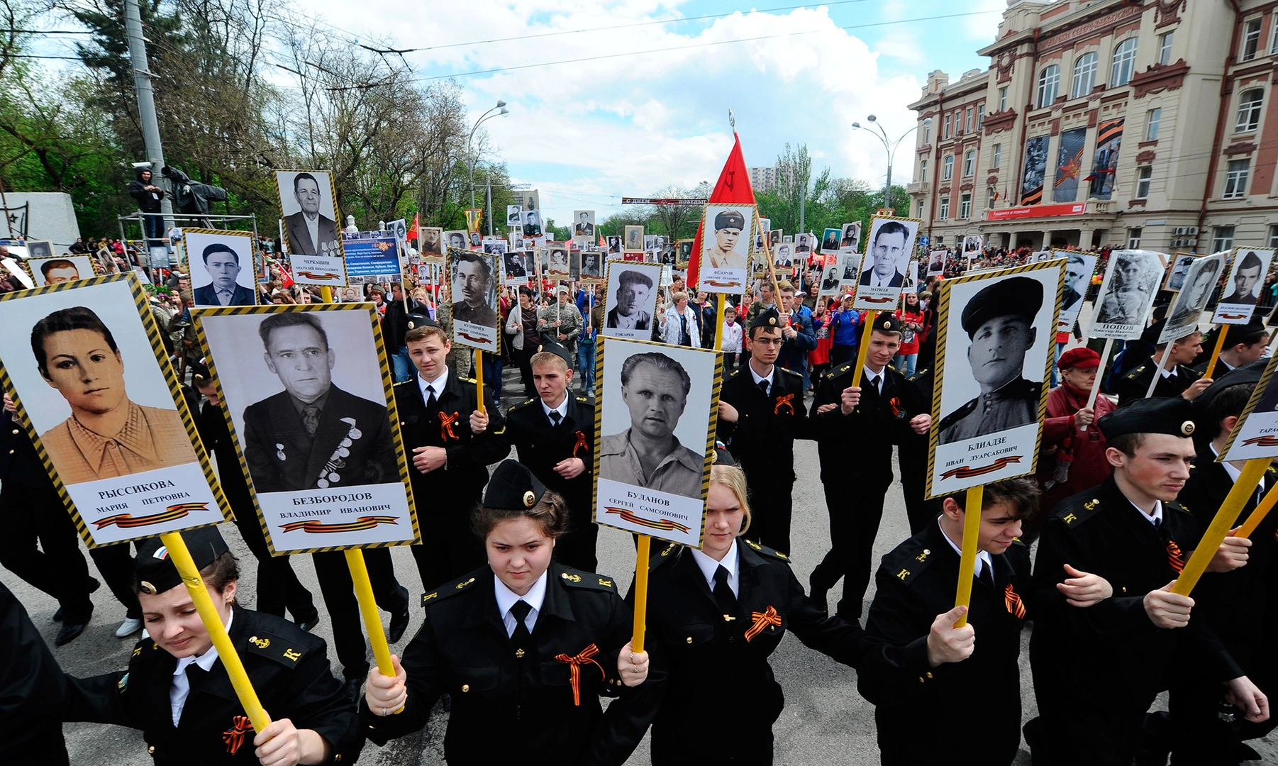 Когда этот огромный поток проходил мимо нас, мы испытывали ощущение необыкновенной сакральной мощи от единения поколений: от бодрых еще ветеранов, до маленьких детей, которых несли на руках. Эти тысячи лиц людей, которые погибли или выжили на войне, победив, — это производит очень сильное впечатление и говорит о пассионарном подъеме в нашей стране.